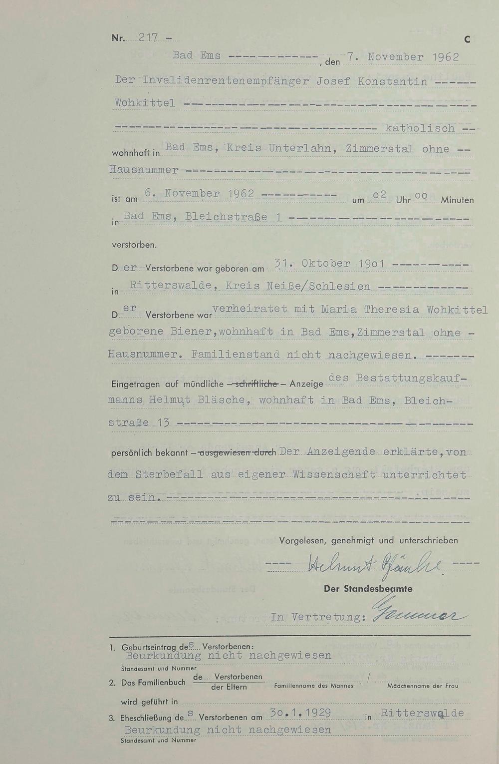 1538: Sterberegister 1962