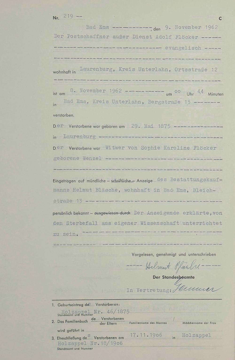 1538: Sterberegister 1962