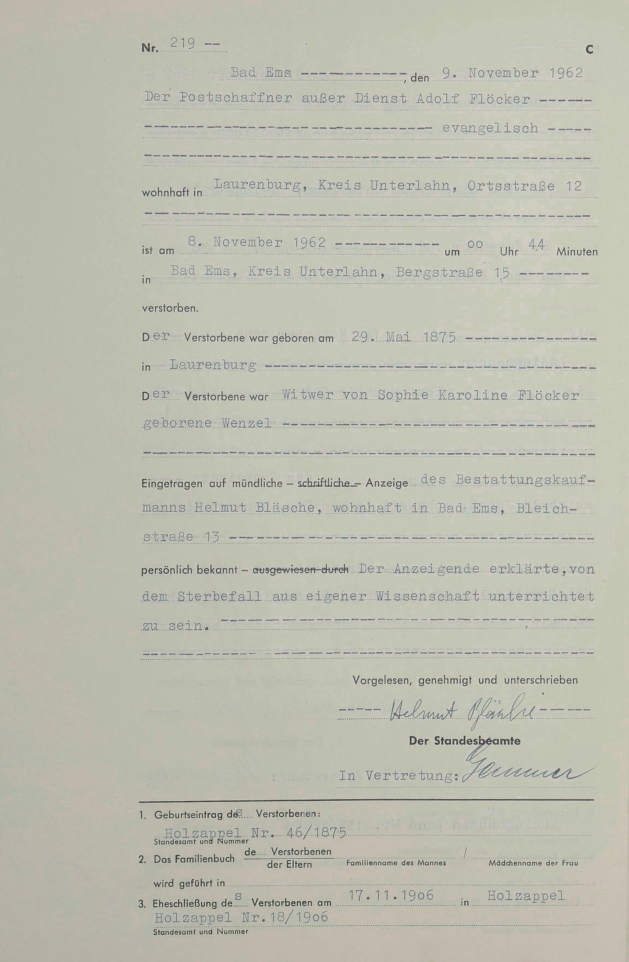 Sterberegister 1962