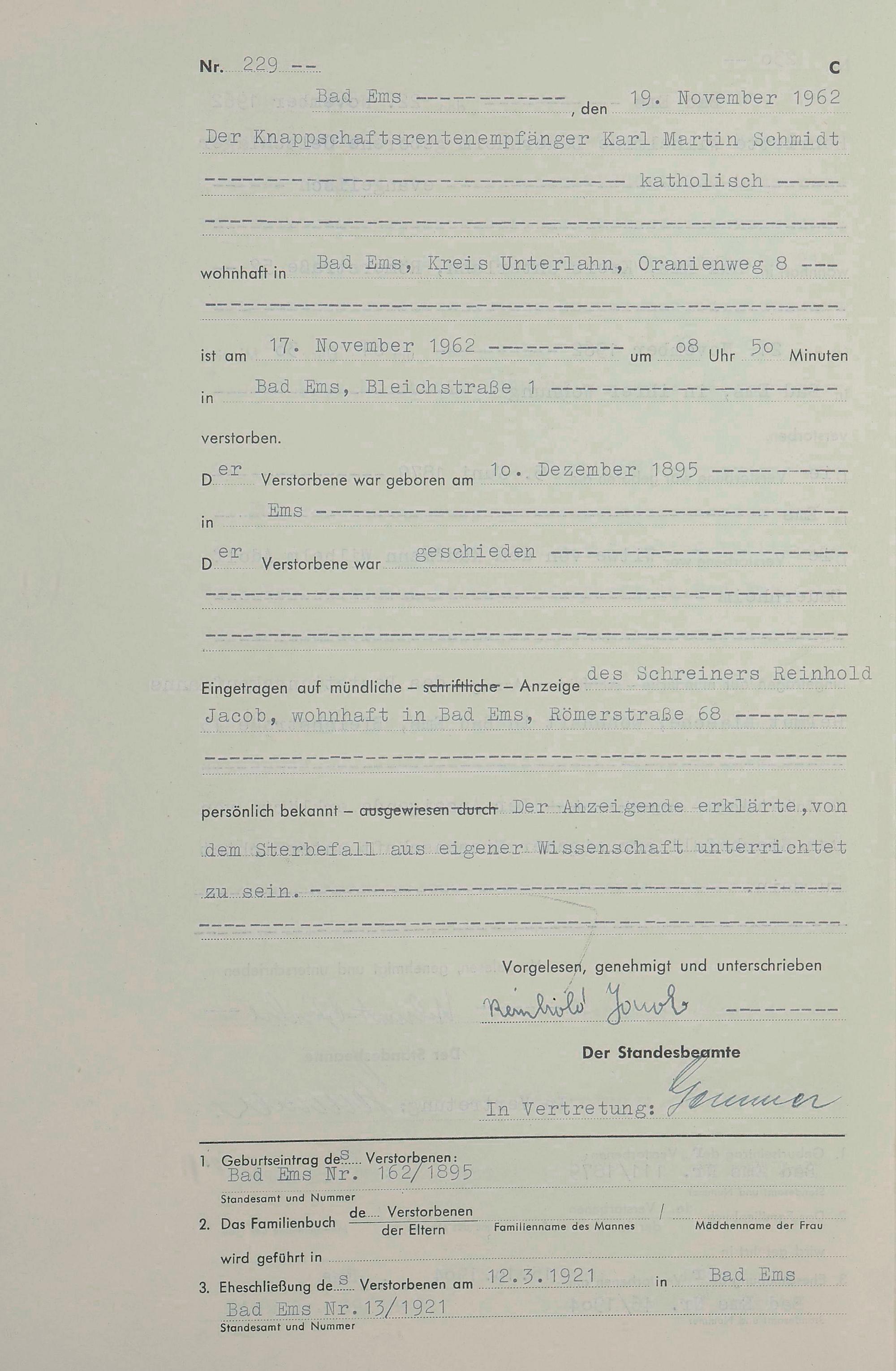 1538: Sterberegister 1962