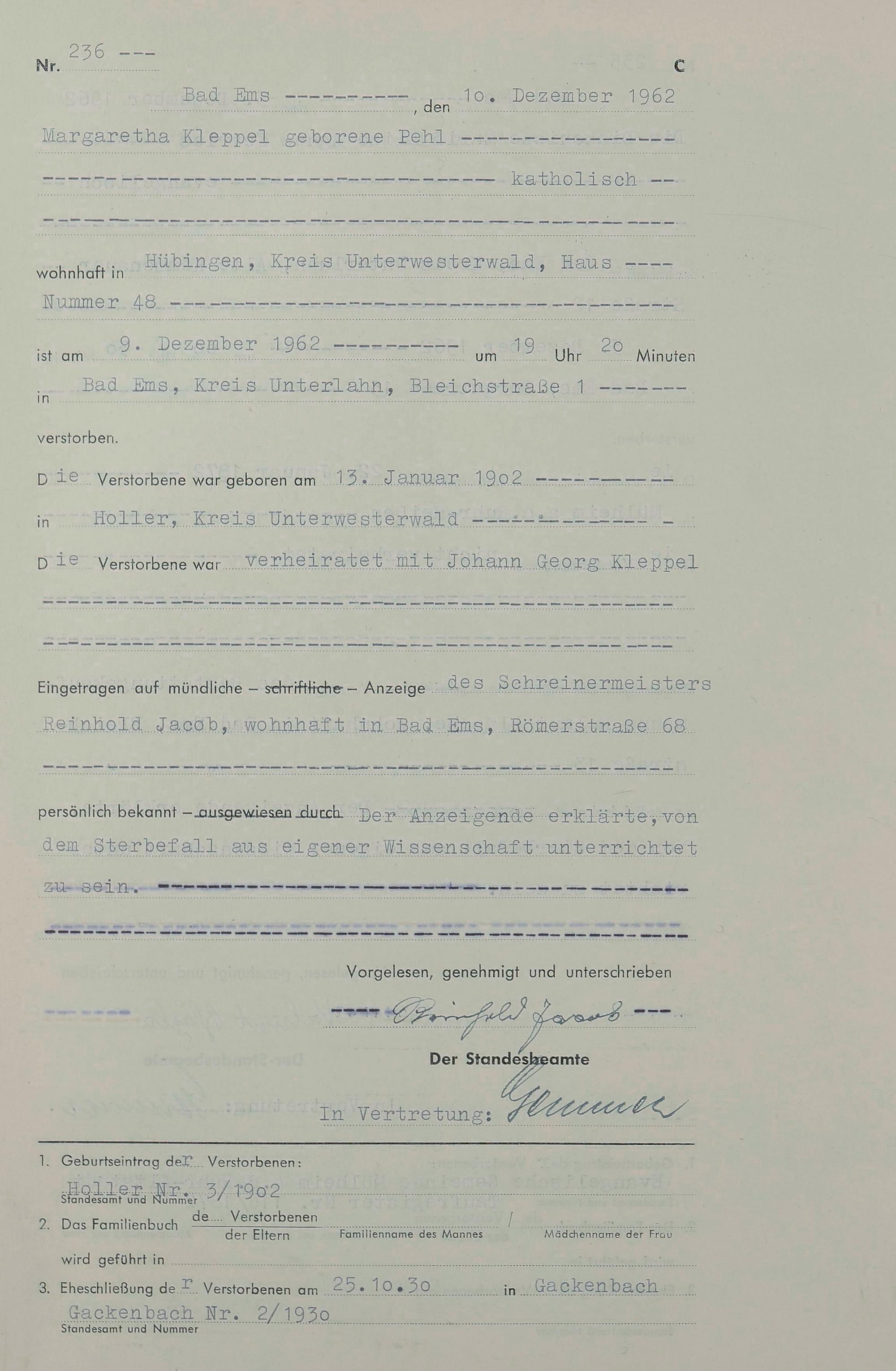 1538: Sterberegister 1962