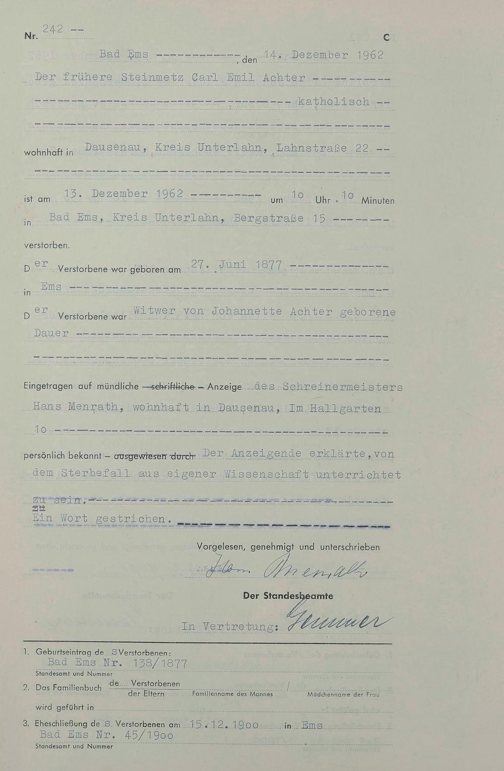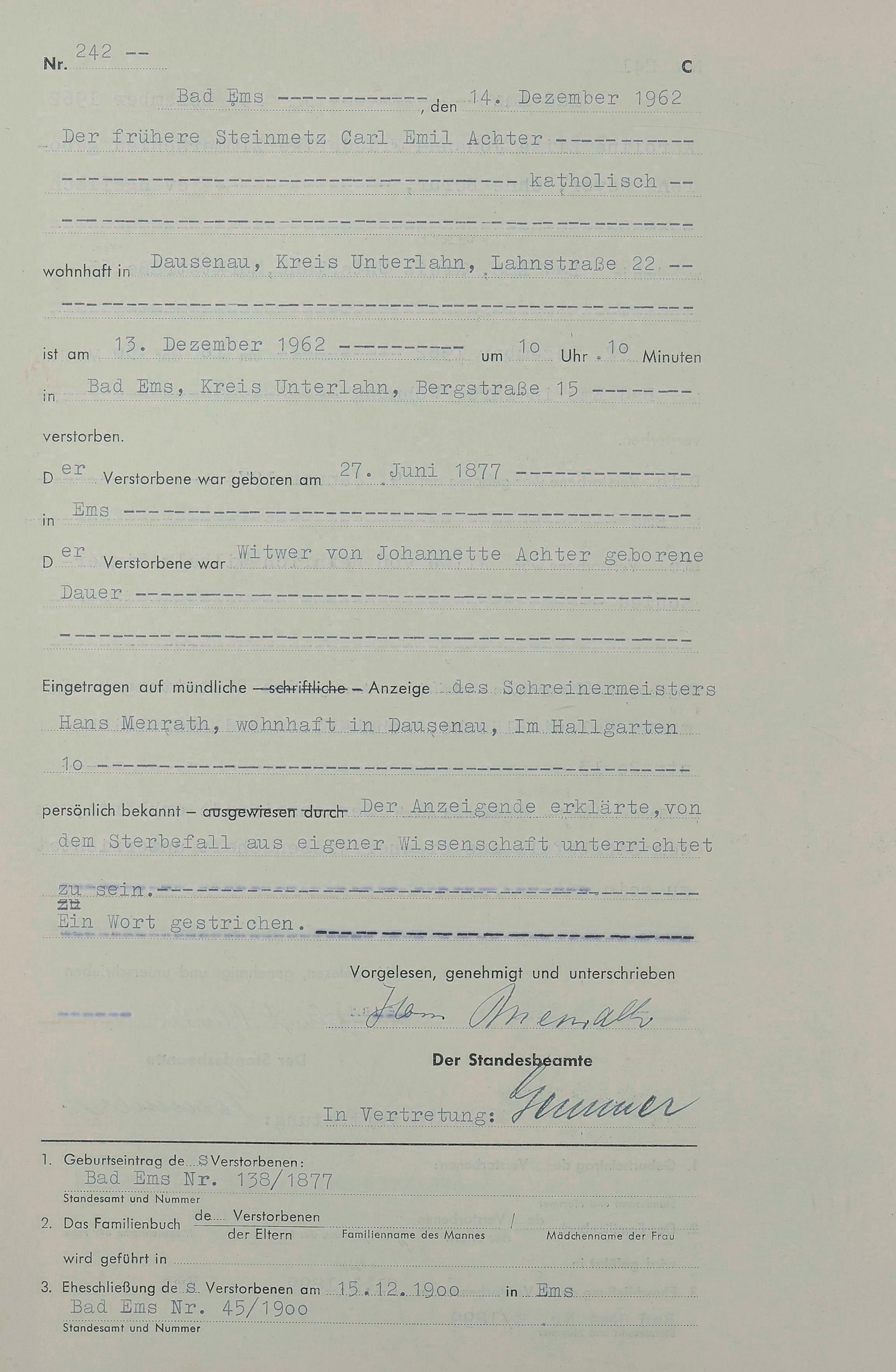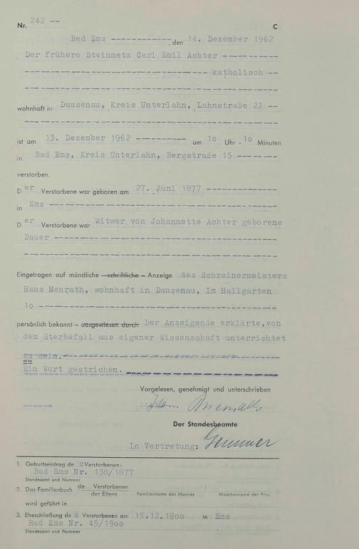 1538: Sterberegister 1962