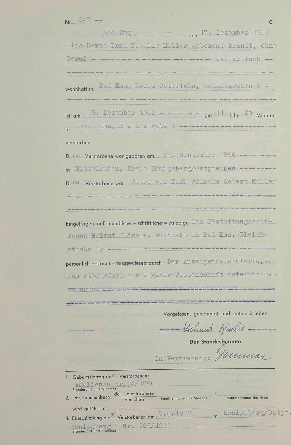 Sterberegister 1962