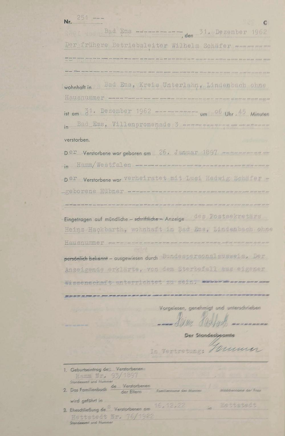 Sterberegister 1962