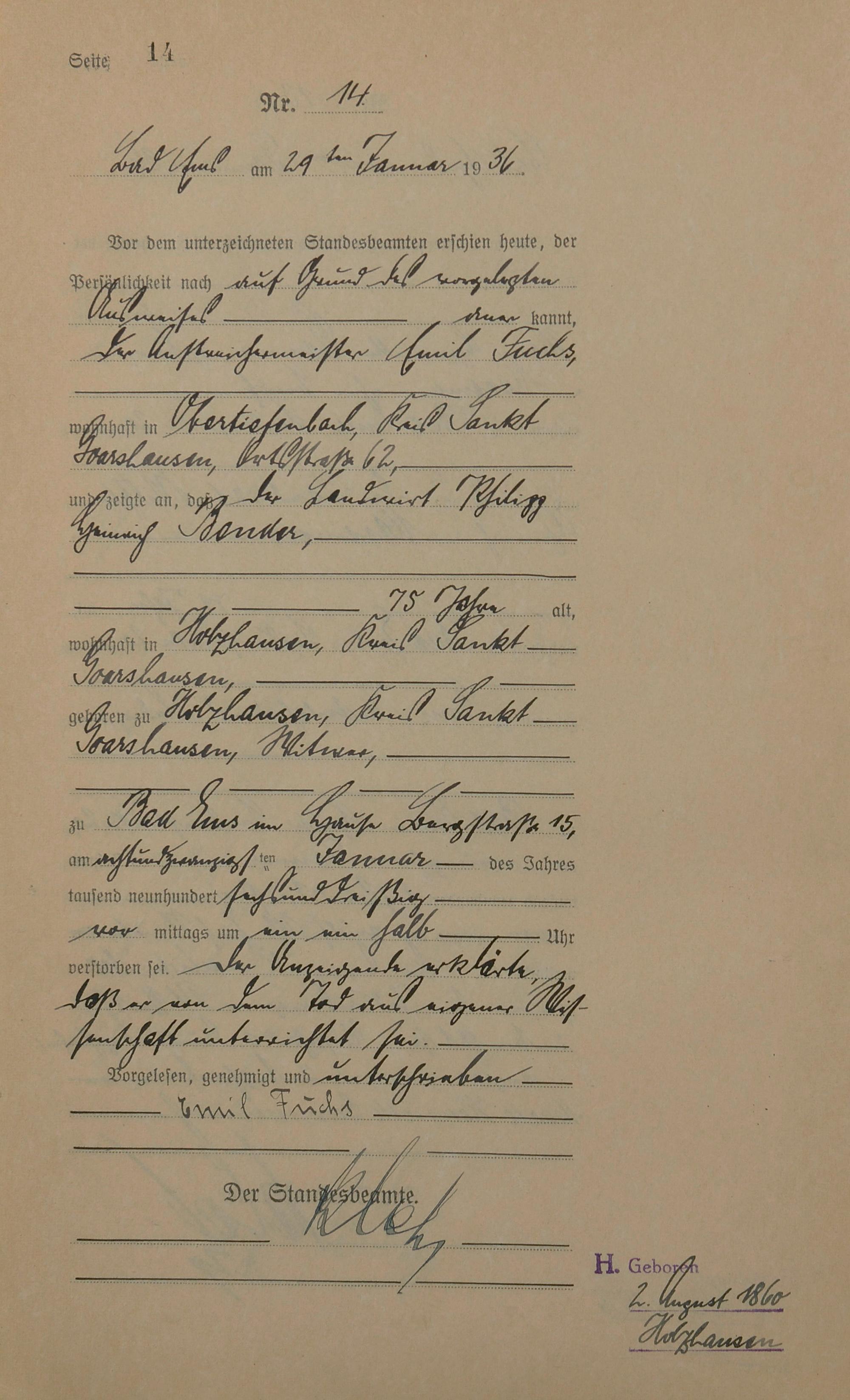 Sterberegister 1936