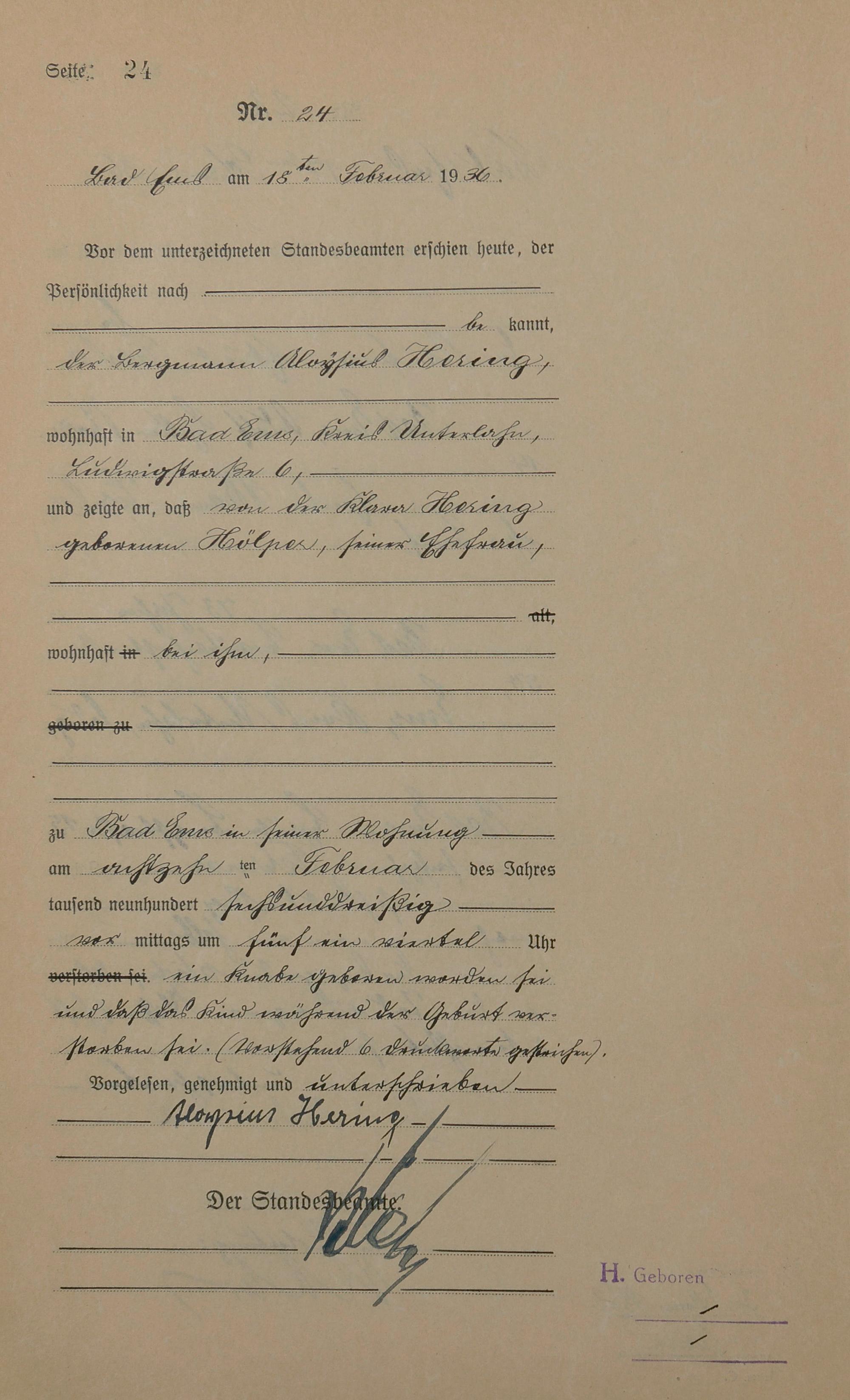 Sterberegister 1936
