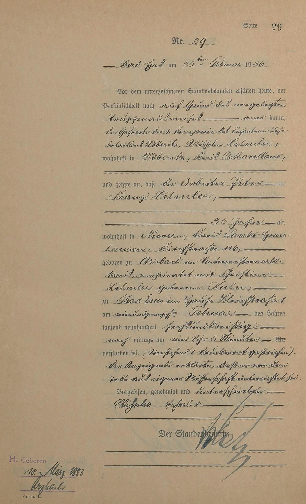Sterberegister 1936