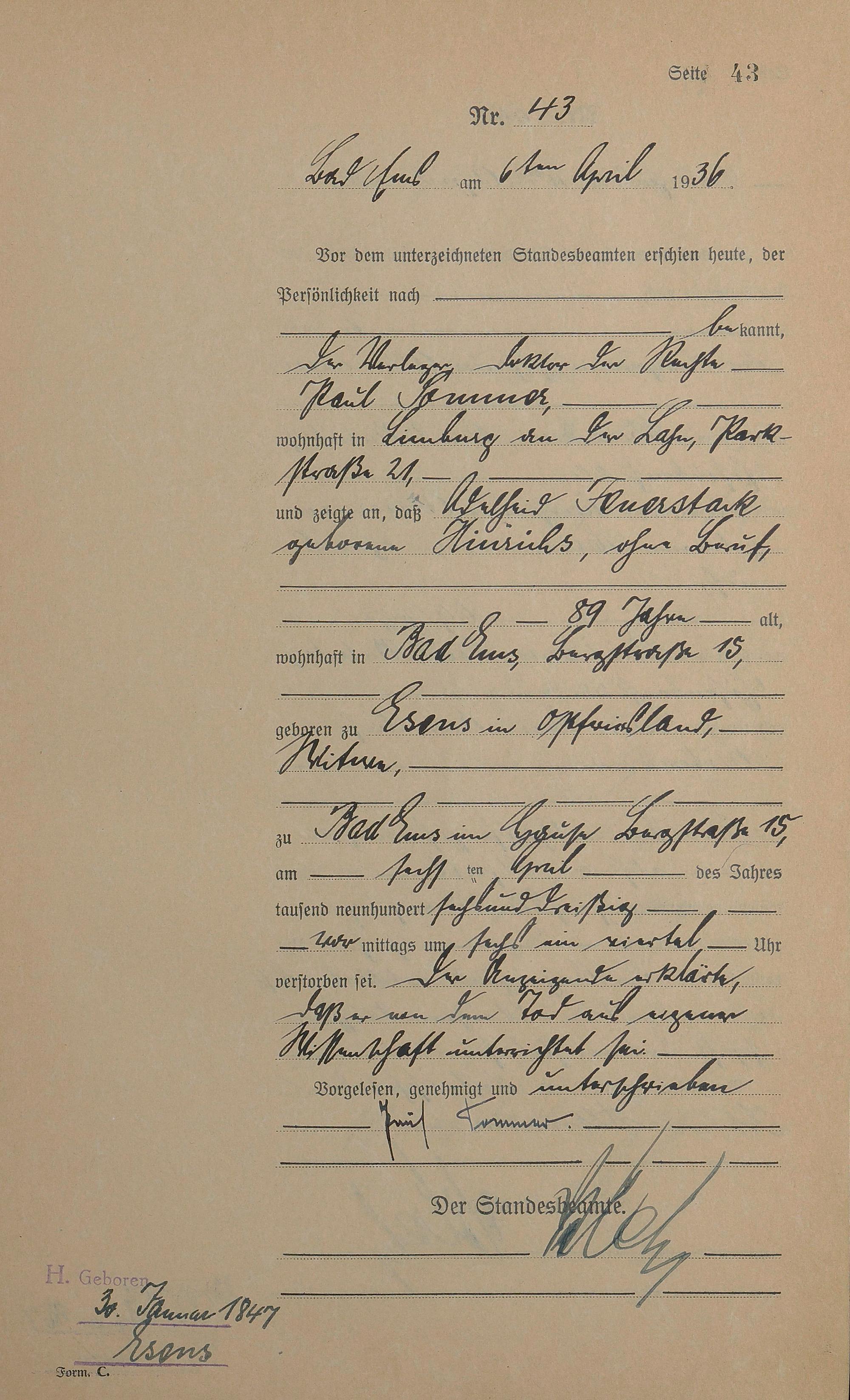 Sterberegister 1936