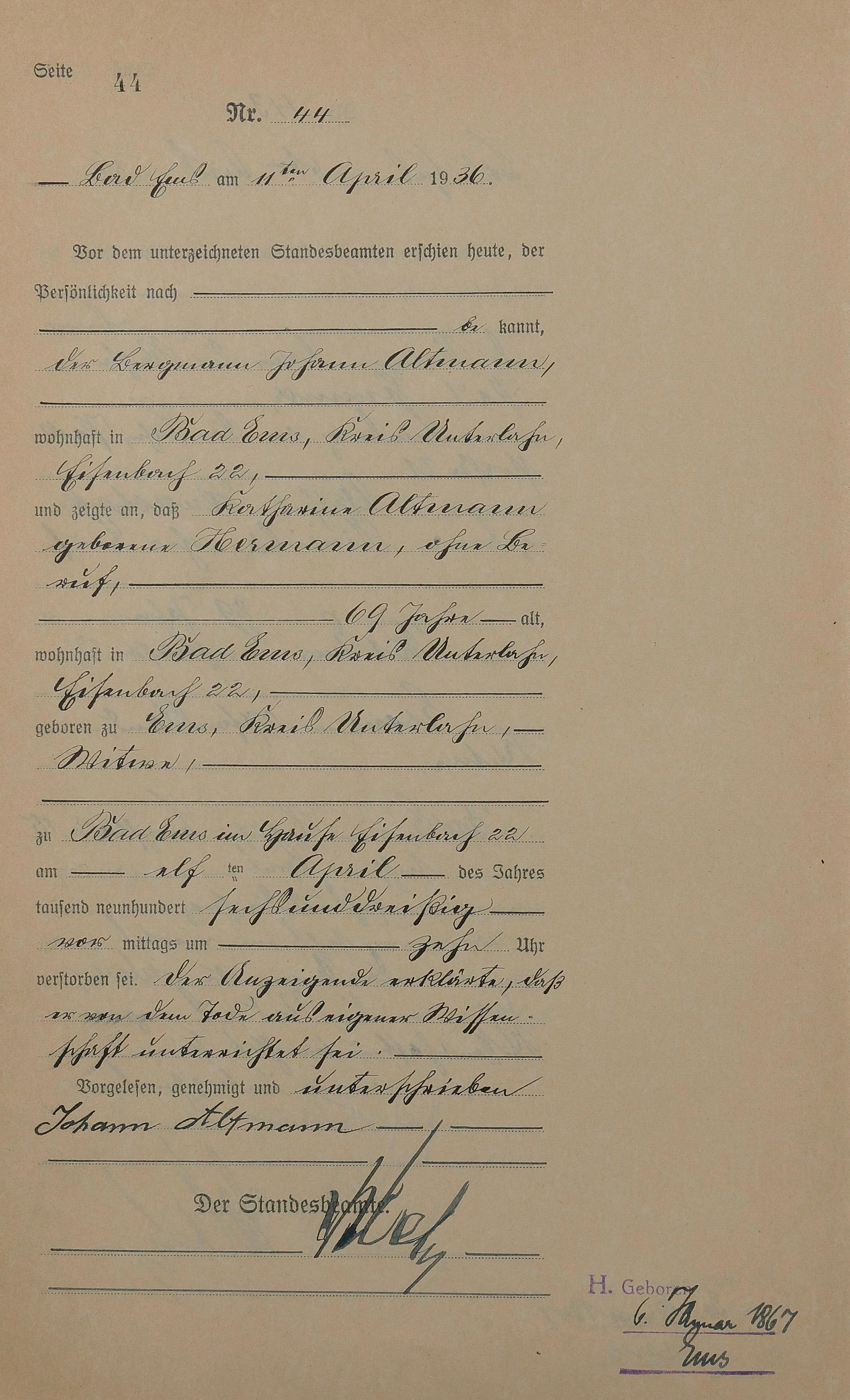 1512: Sterberegister 1936