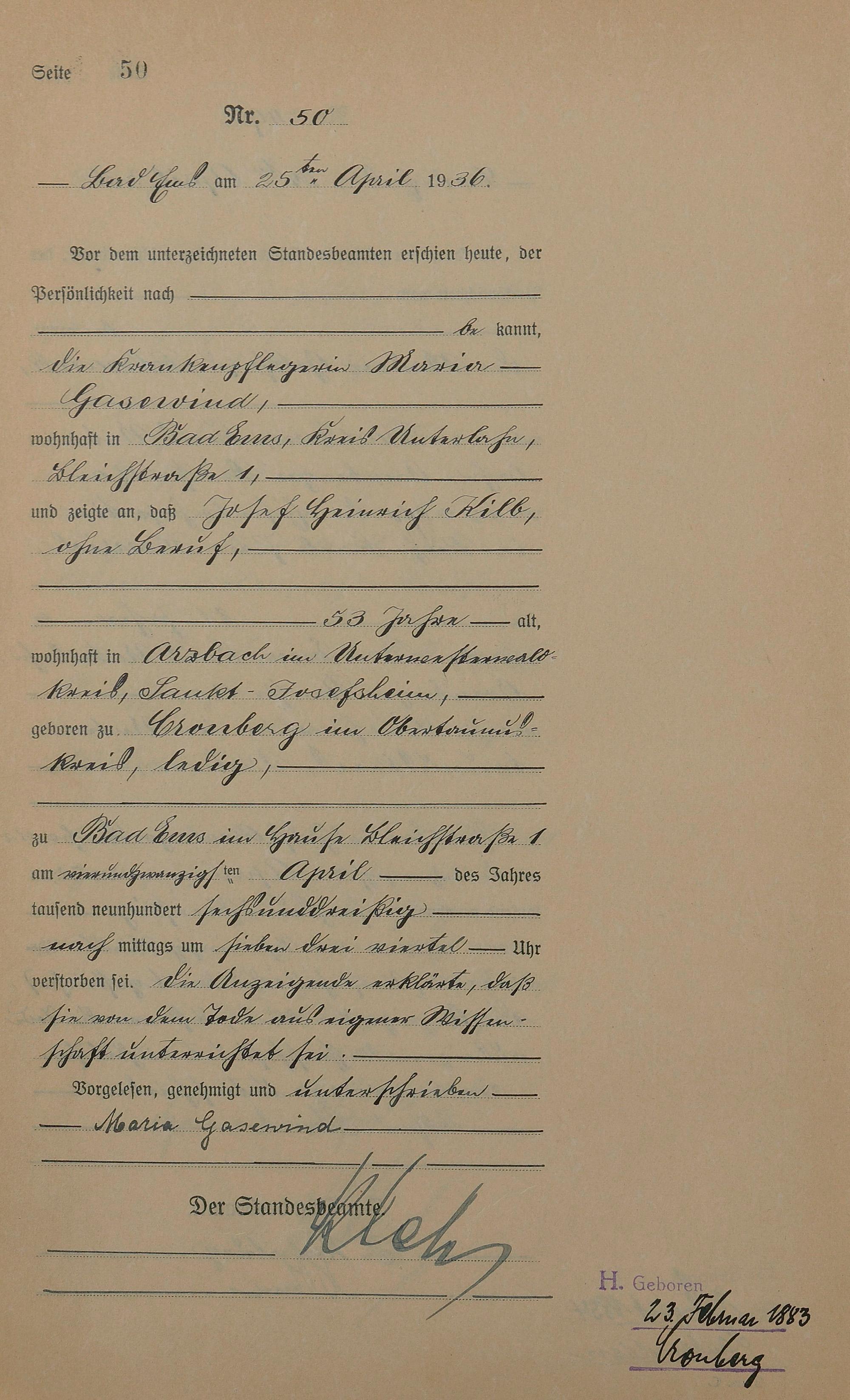 Sterberegister 1936