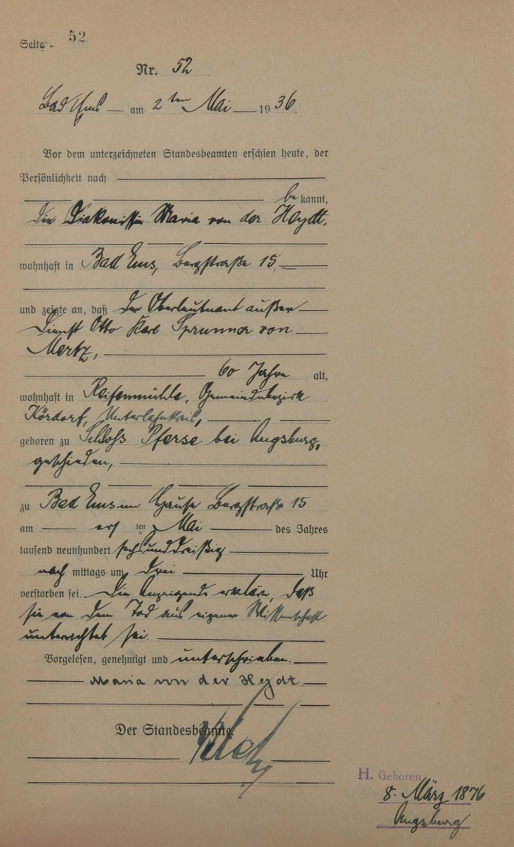 Sterberegister 1936