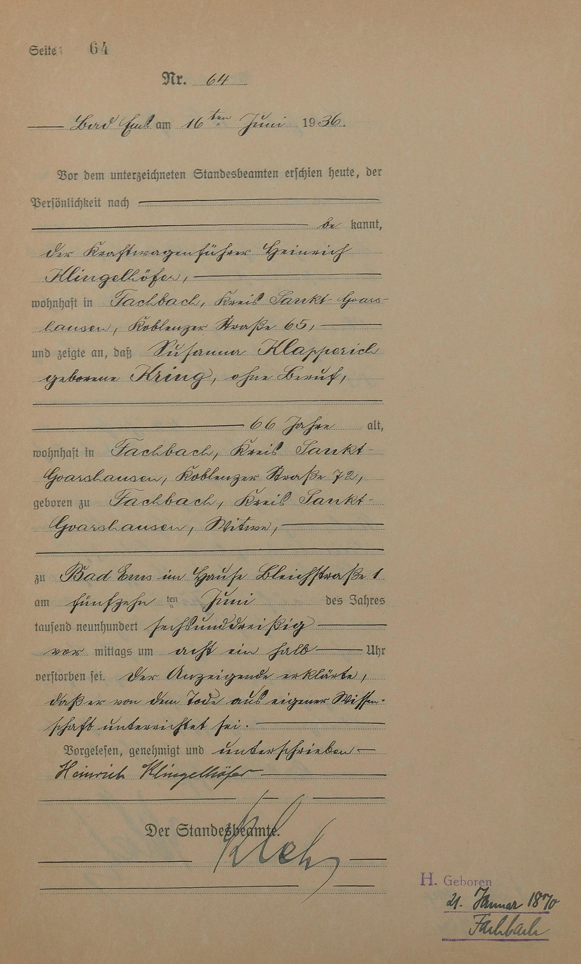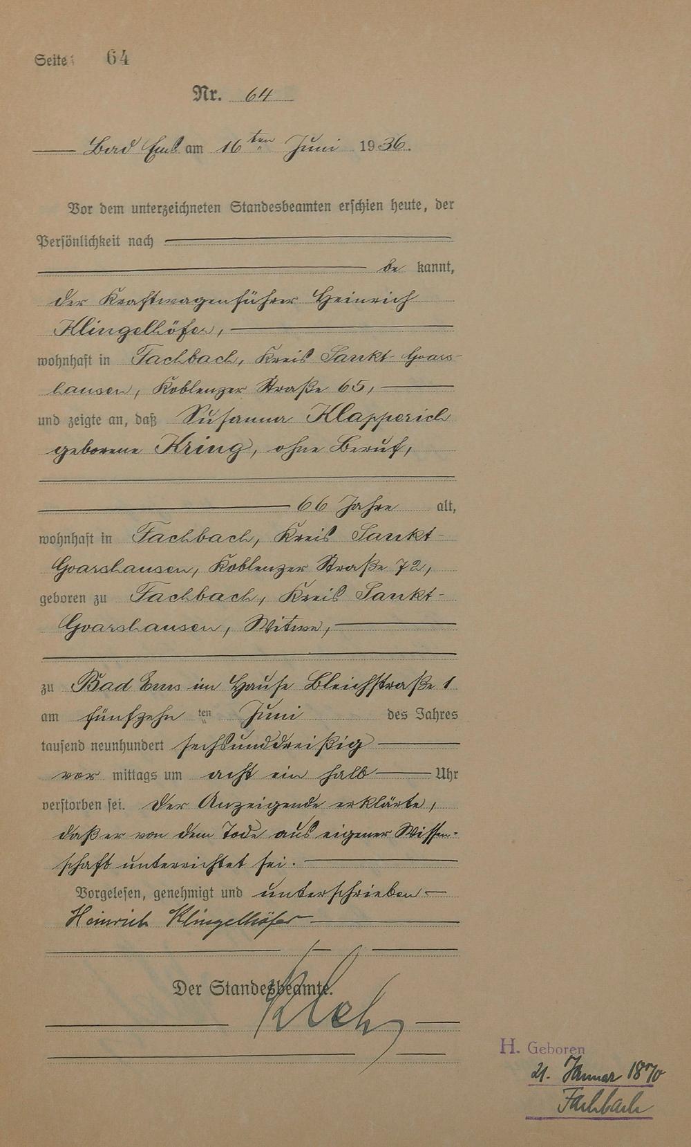 Sterberegister 1936