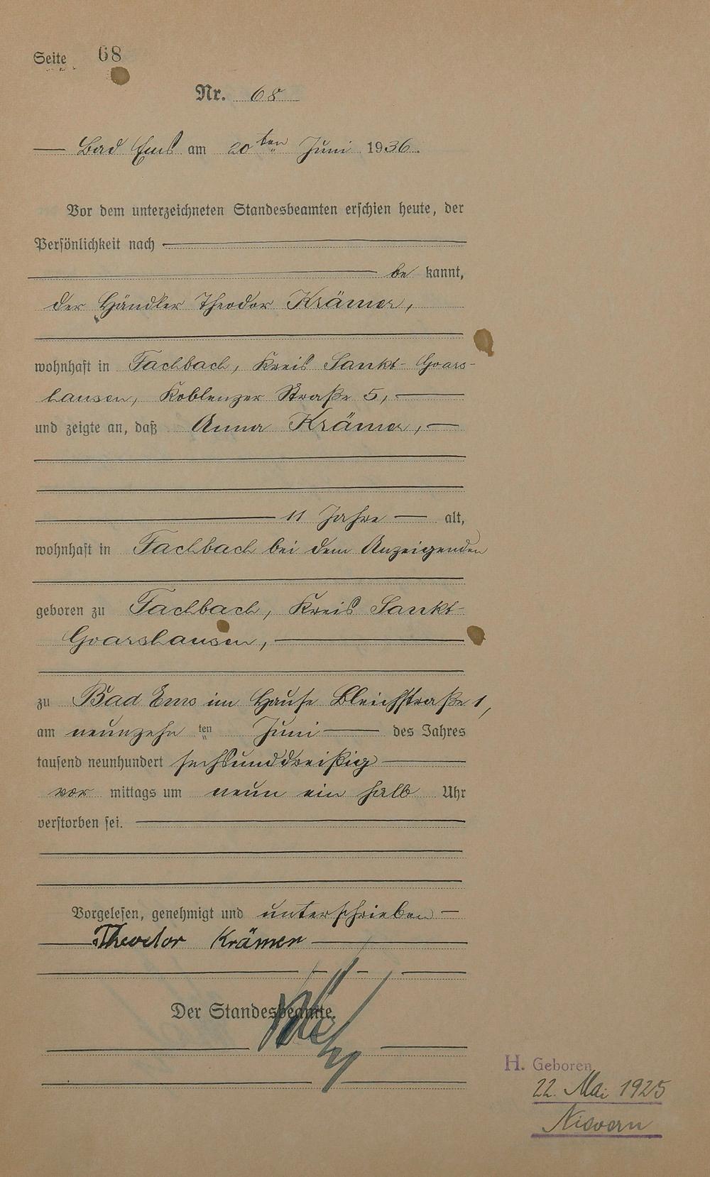 Sterberegister 1936