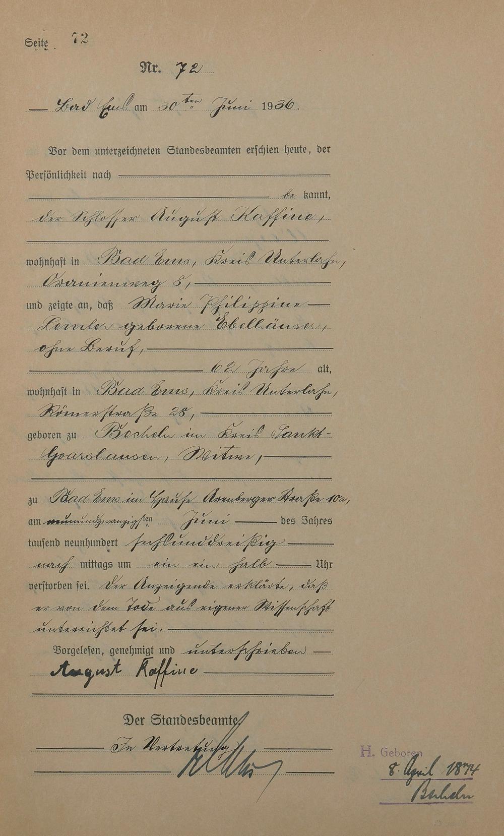 Sterberegister 1936