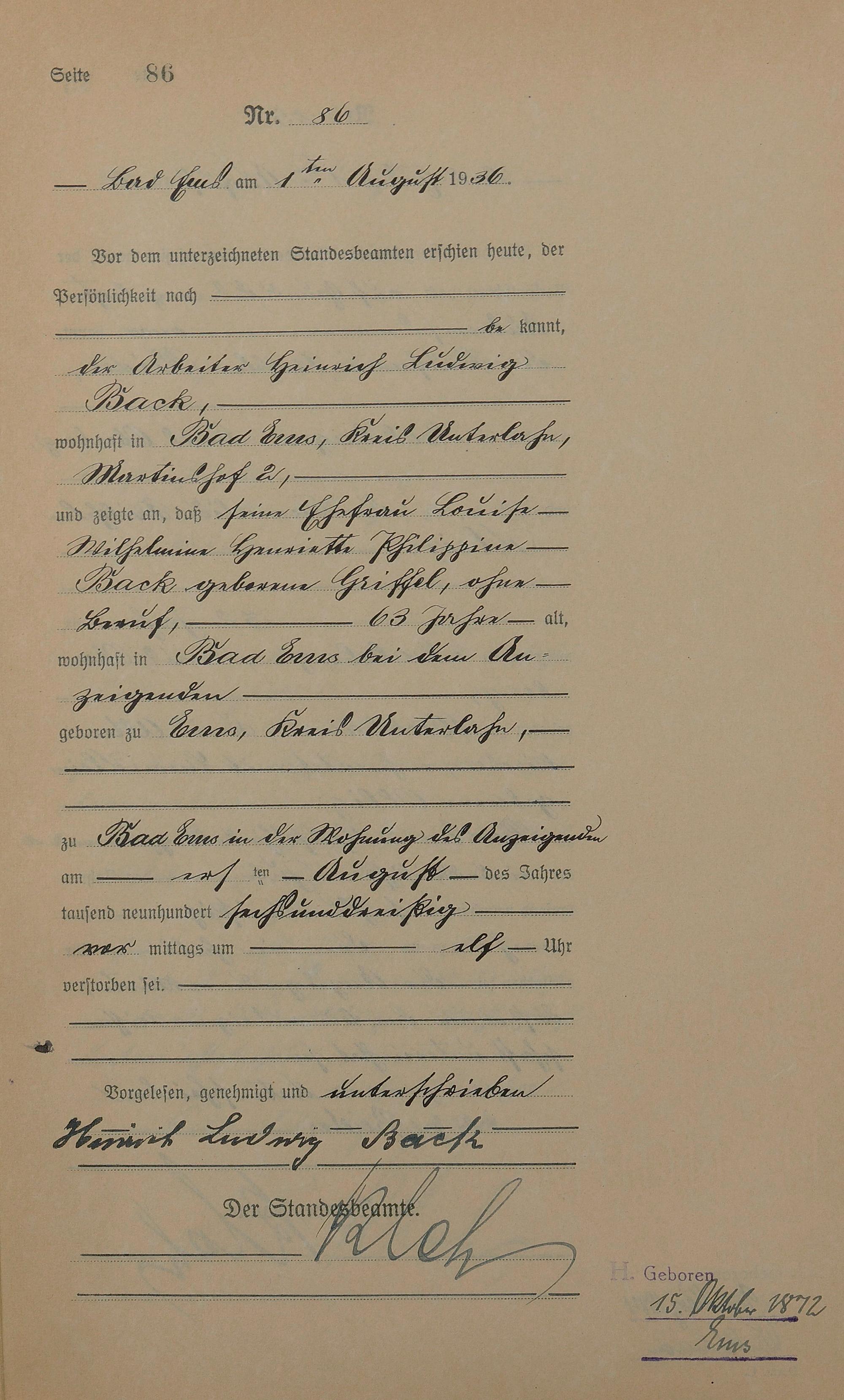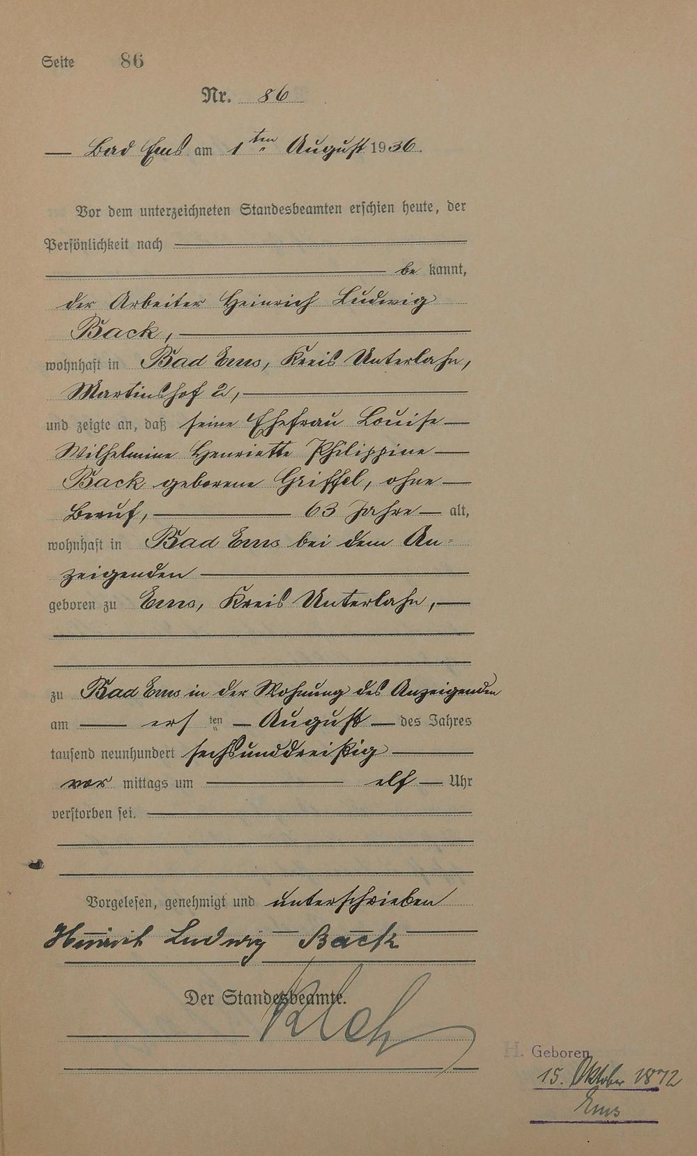 Sterberegister 1936