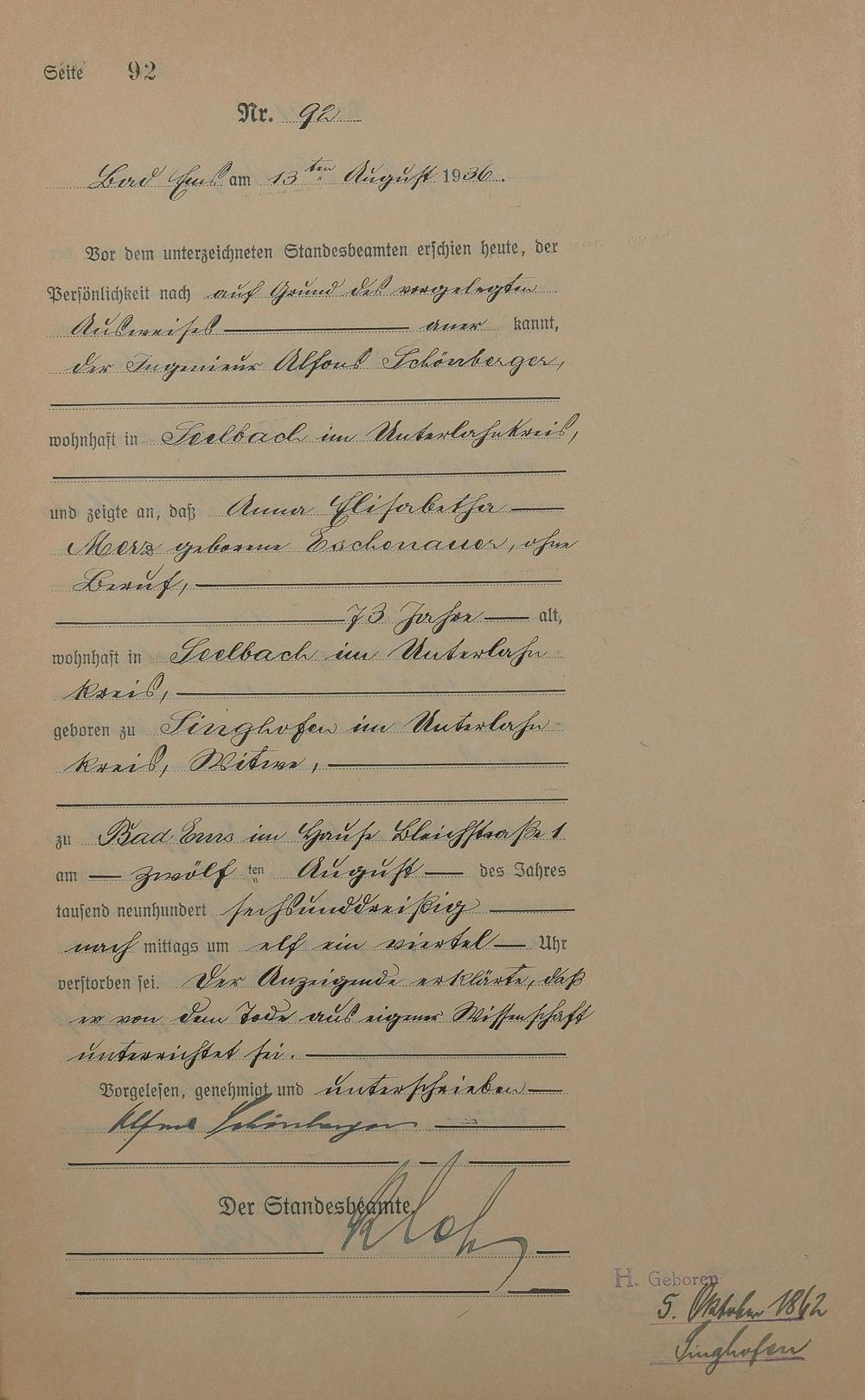 Sterberegister 1936