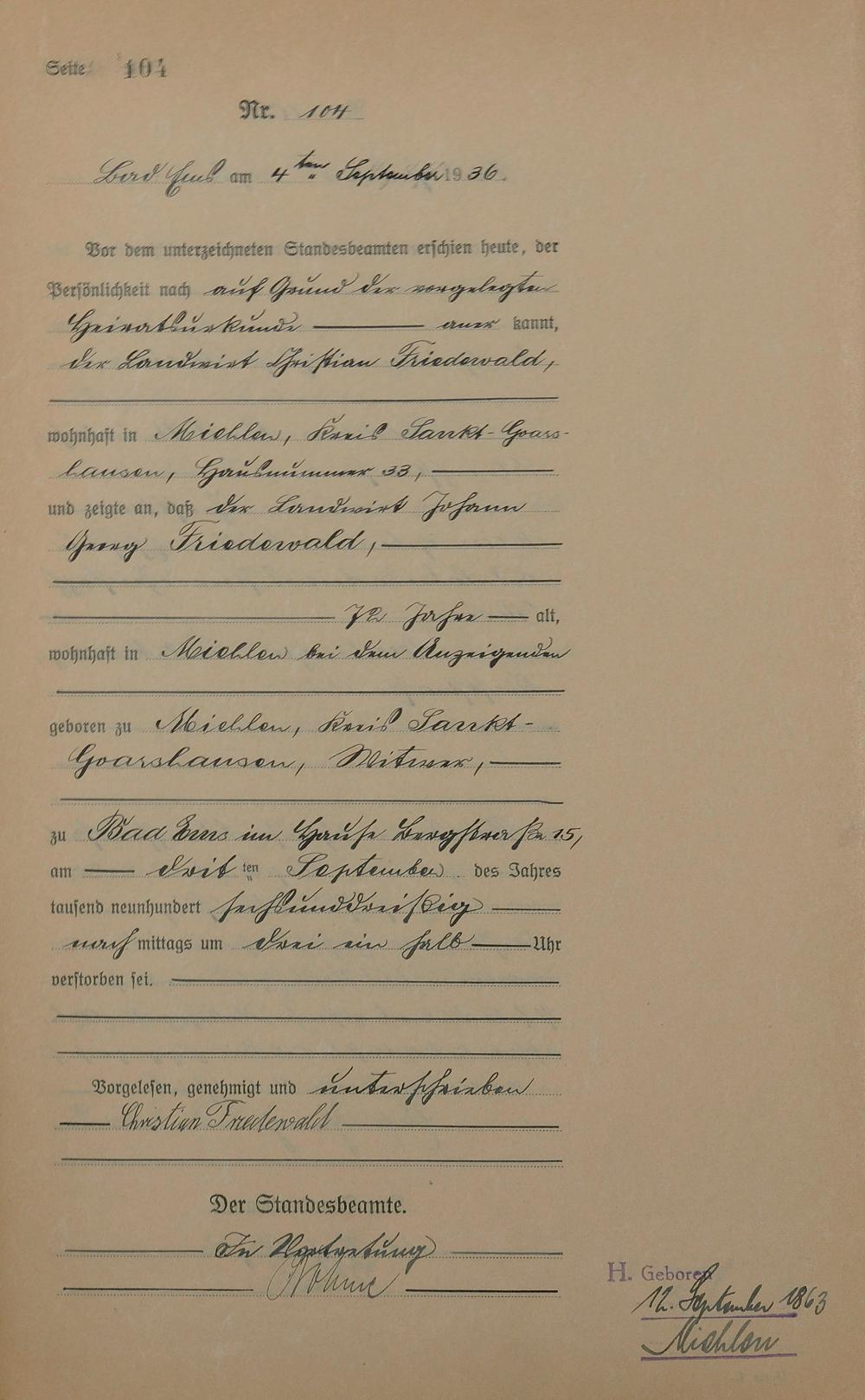 Sterberegister 1936