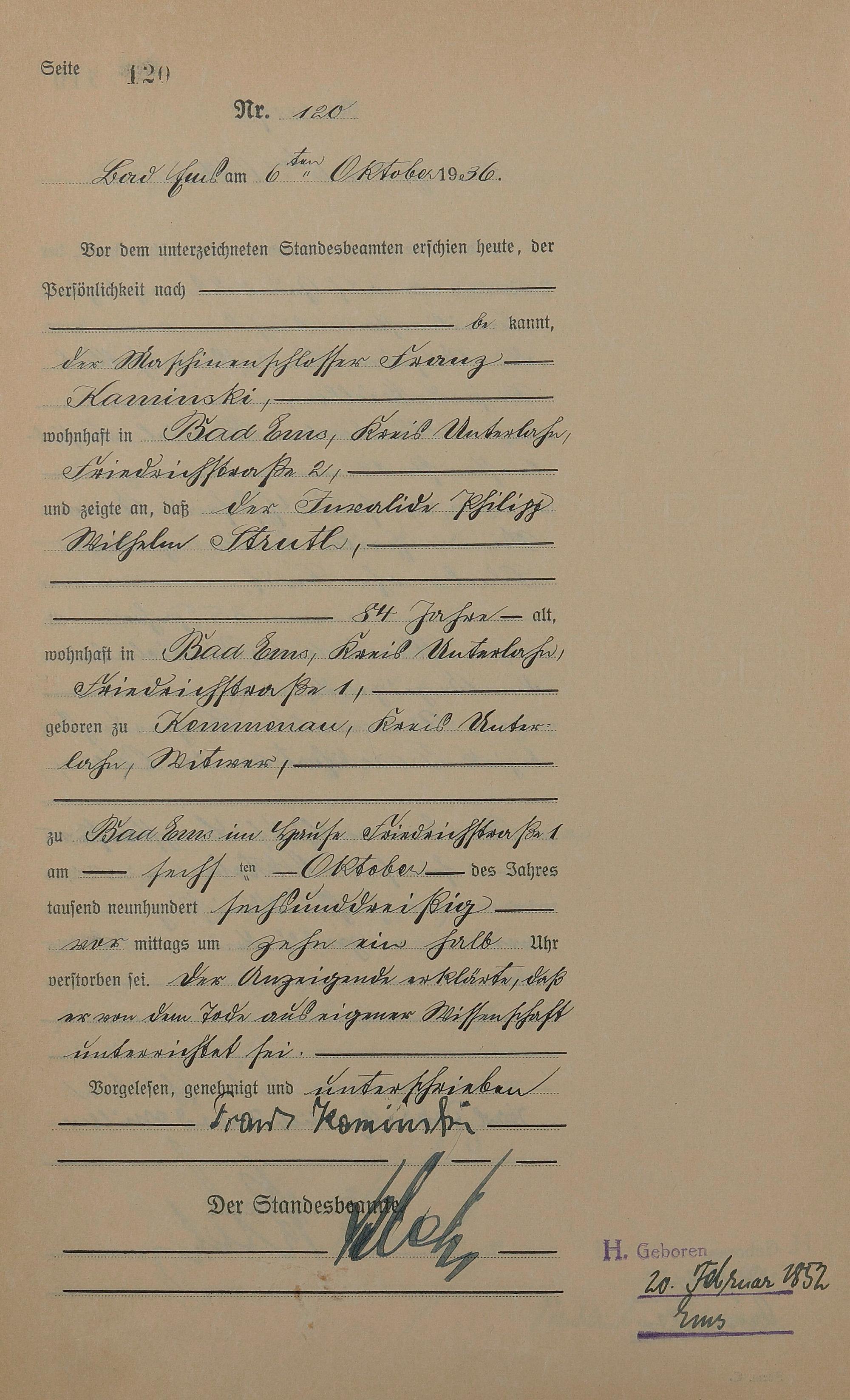 Sterberegister 1936