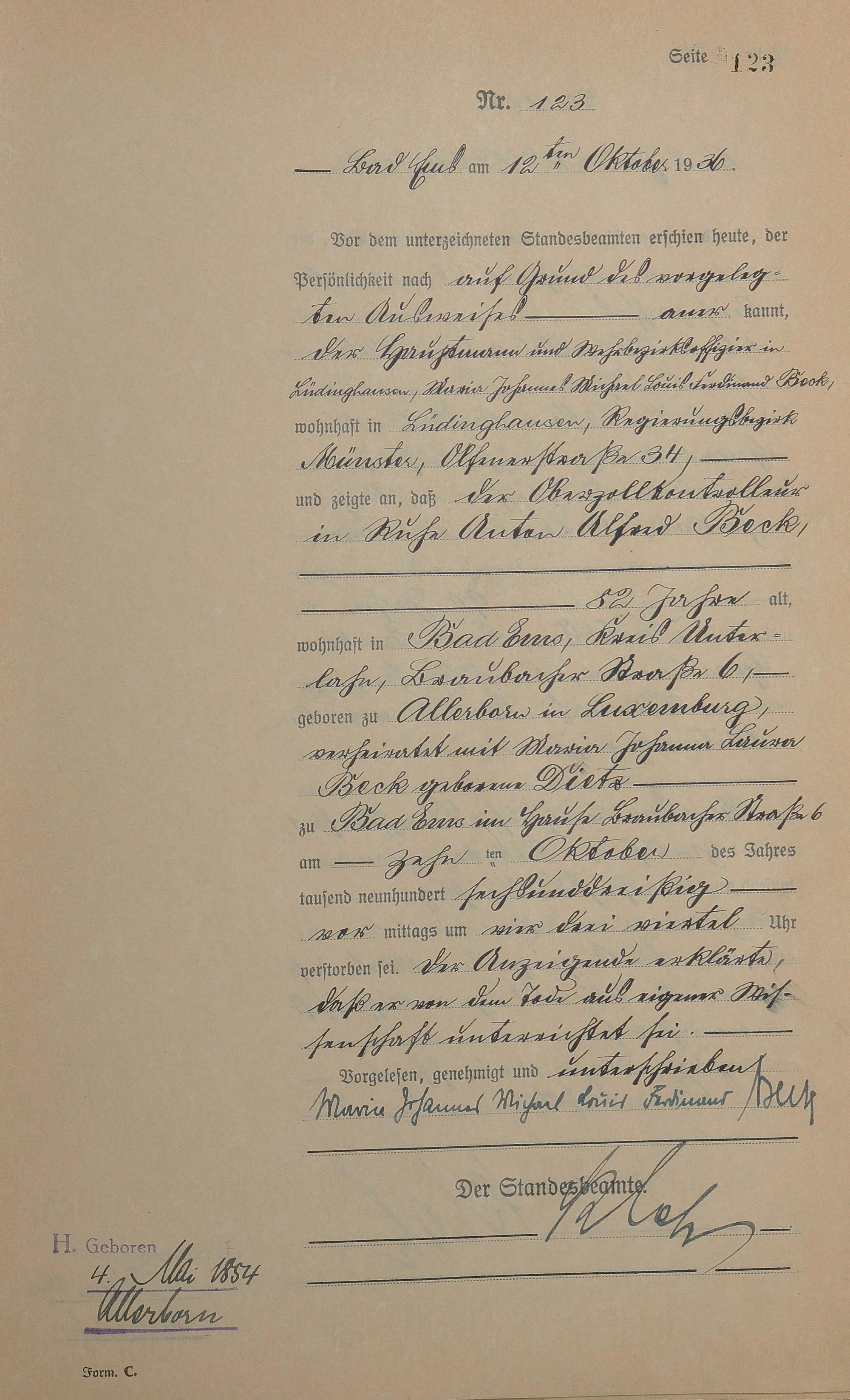 Sterberegister 1936