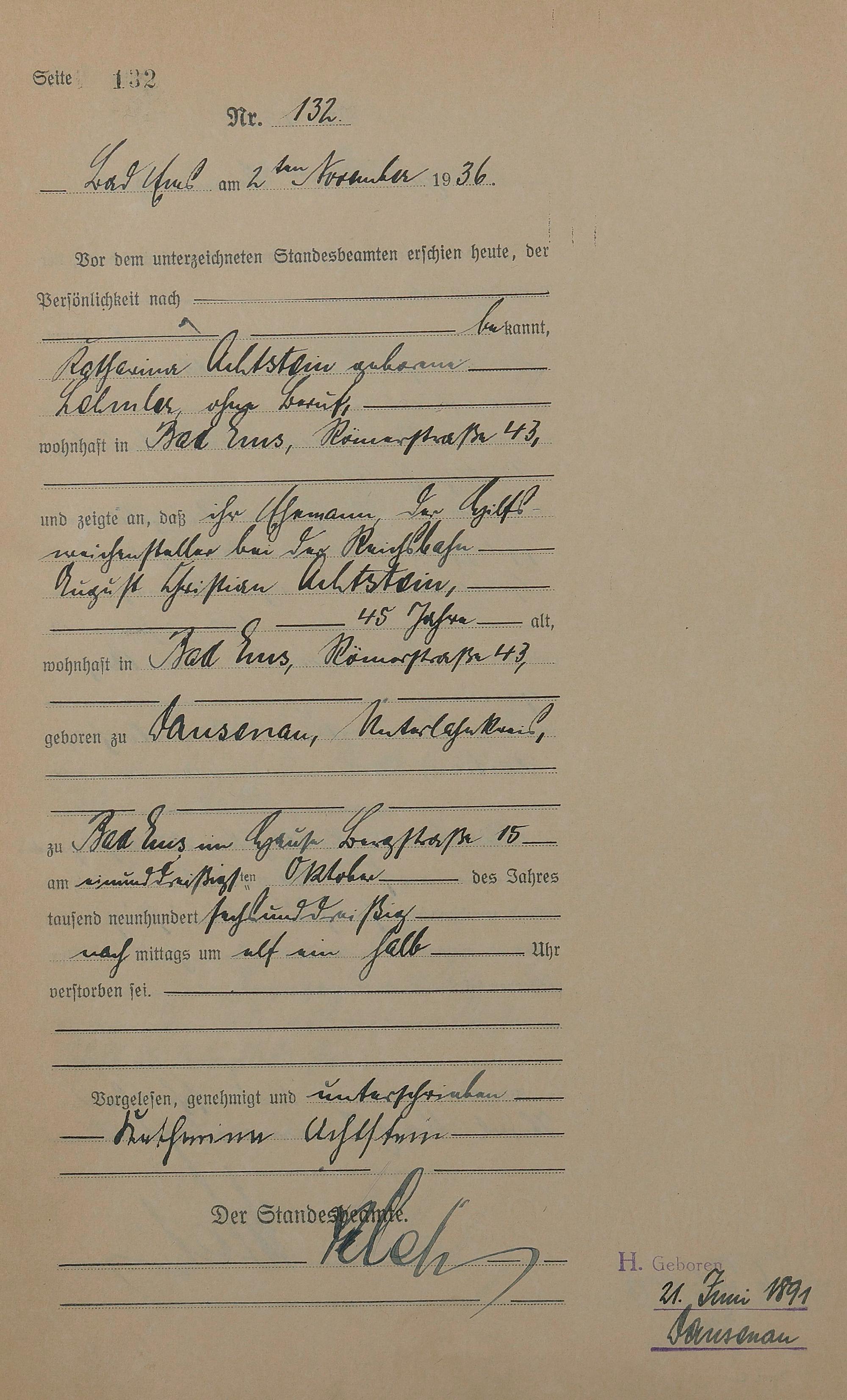 Sterberegister 1936