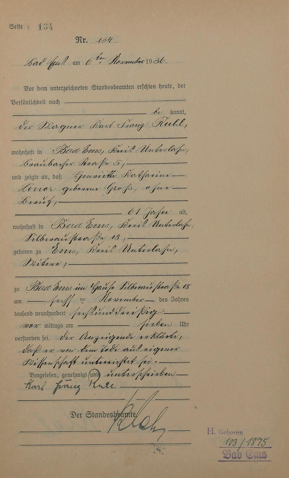 Sterberegister 1936