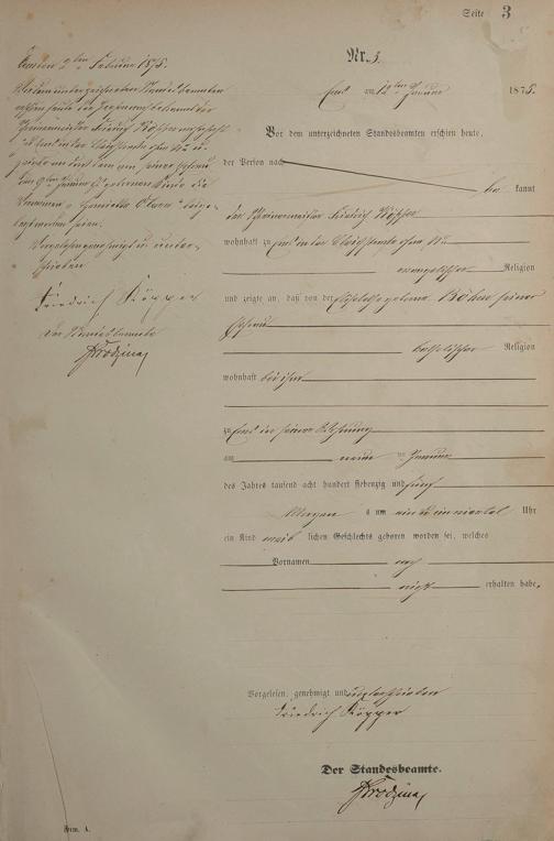 Geburtsregister 1875