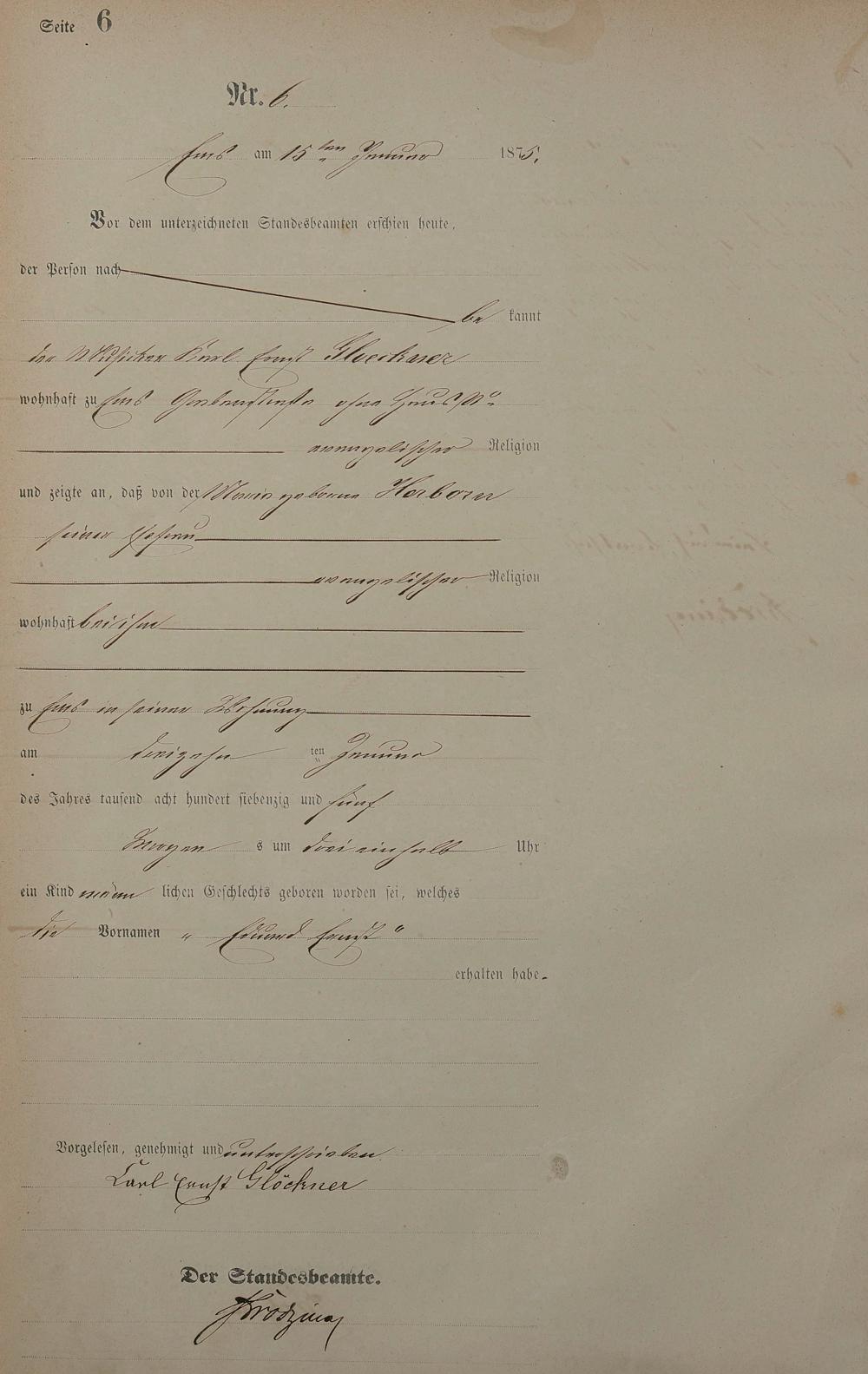 Geburtsregister 1875