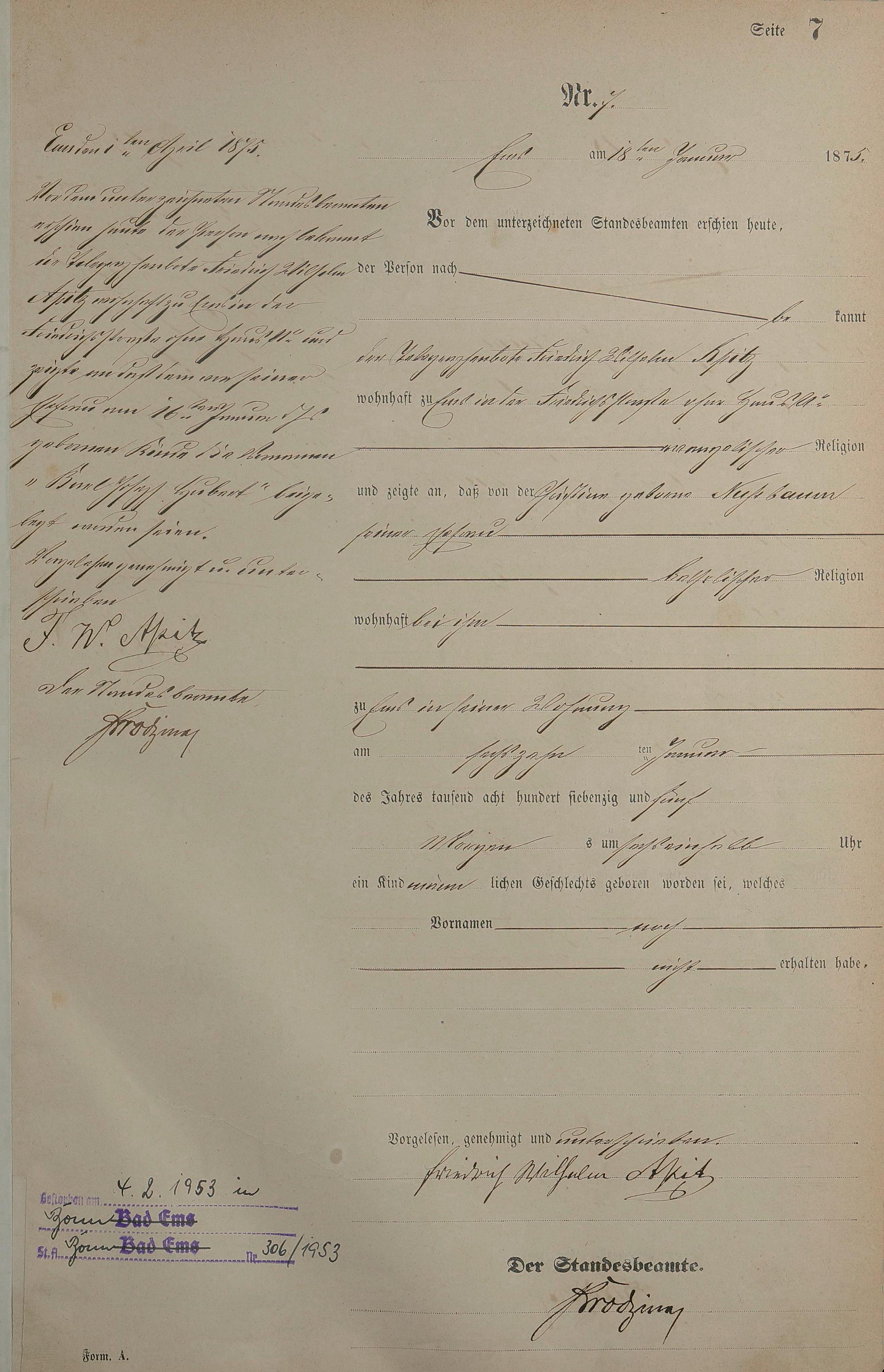 Geburtsregister 1875