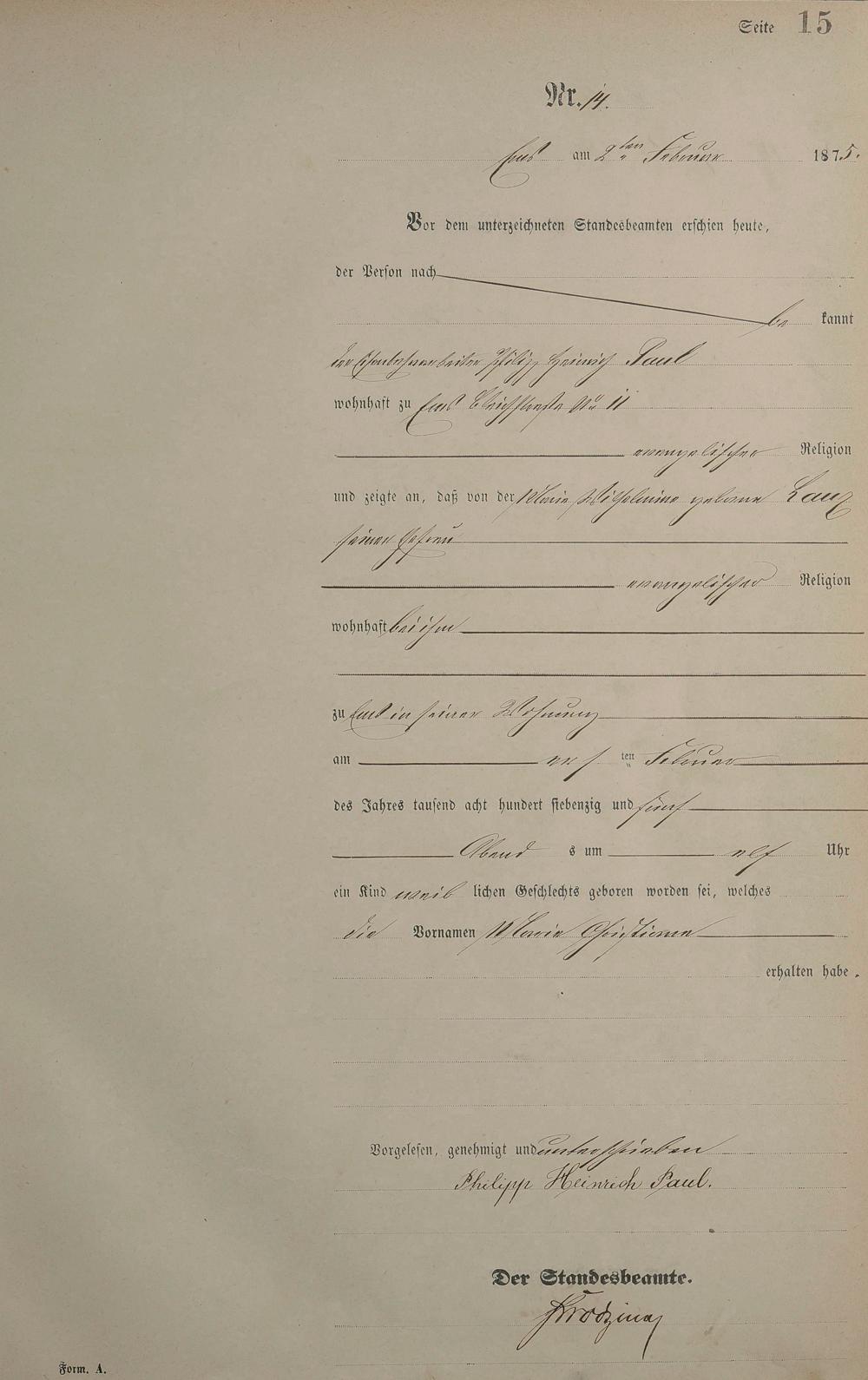 Geburtsregister 1875