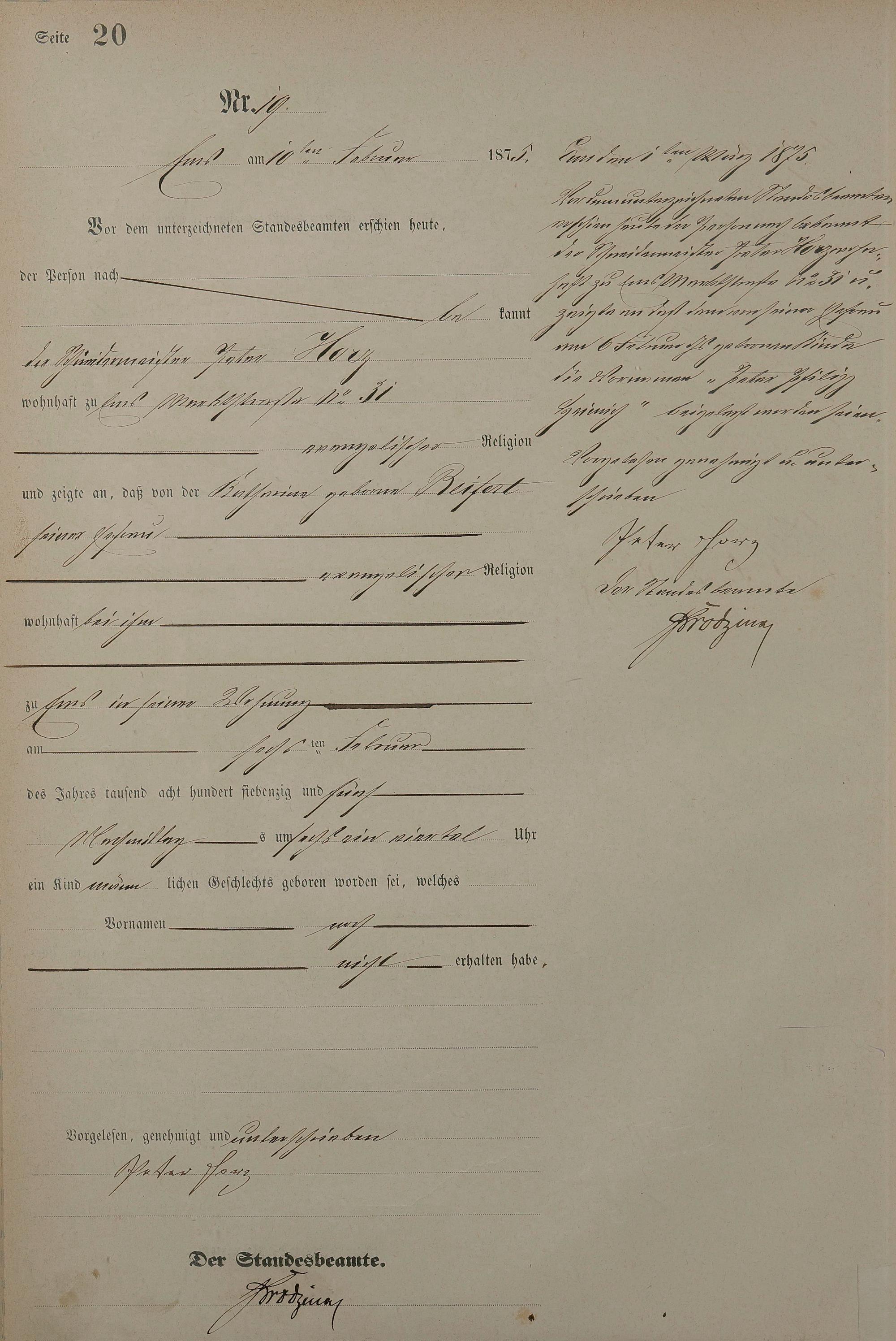 Geburtsregister 1875