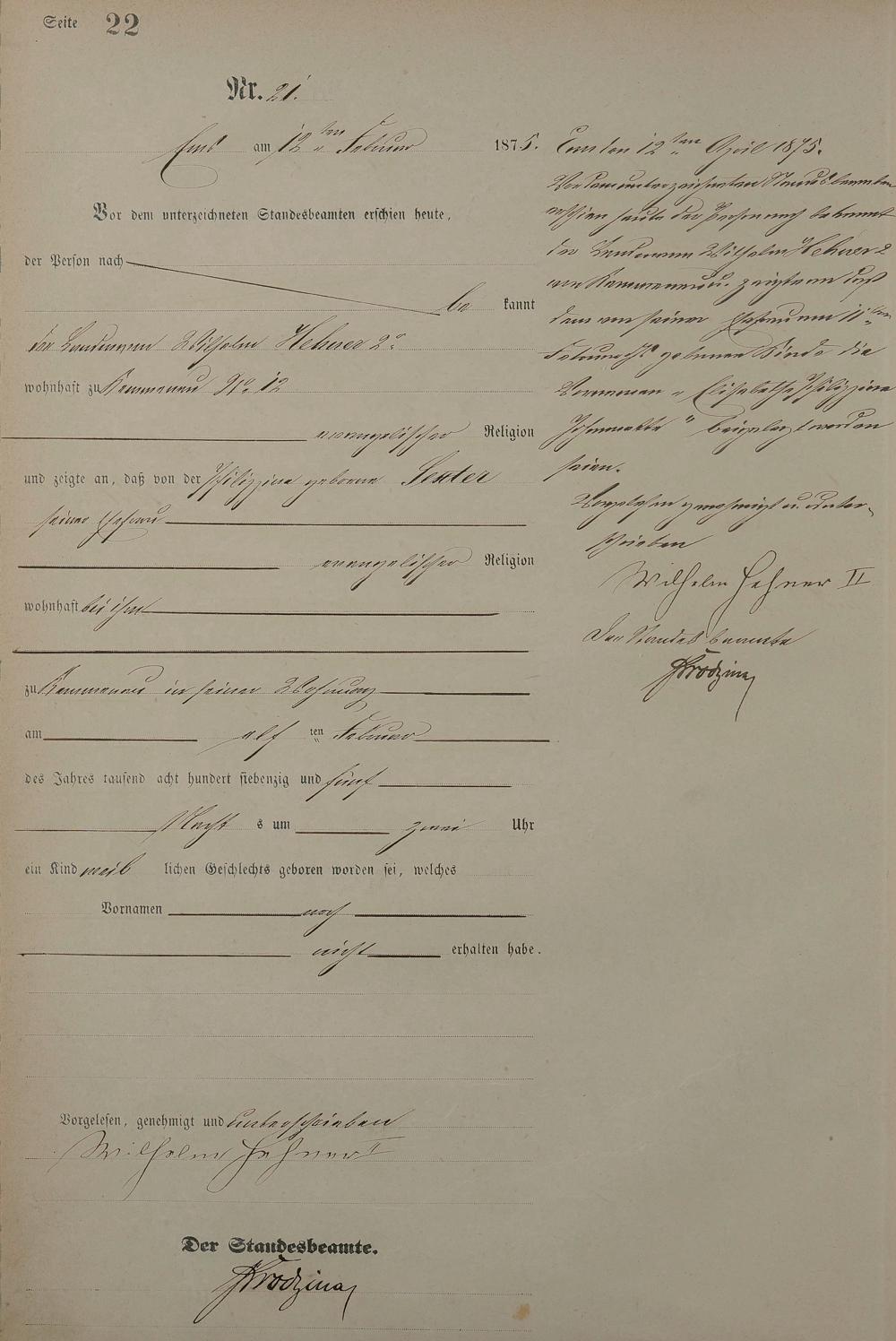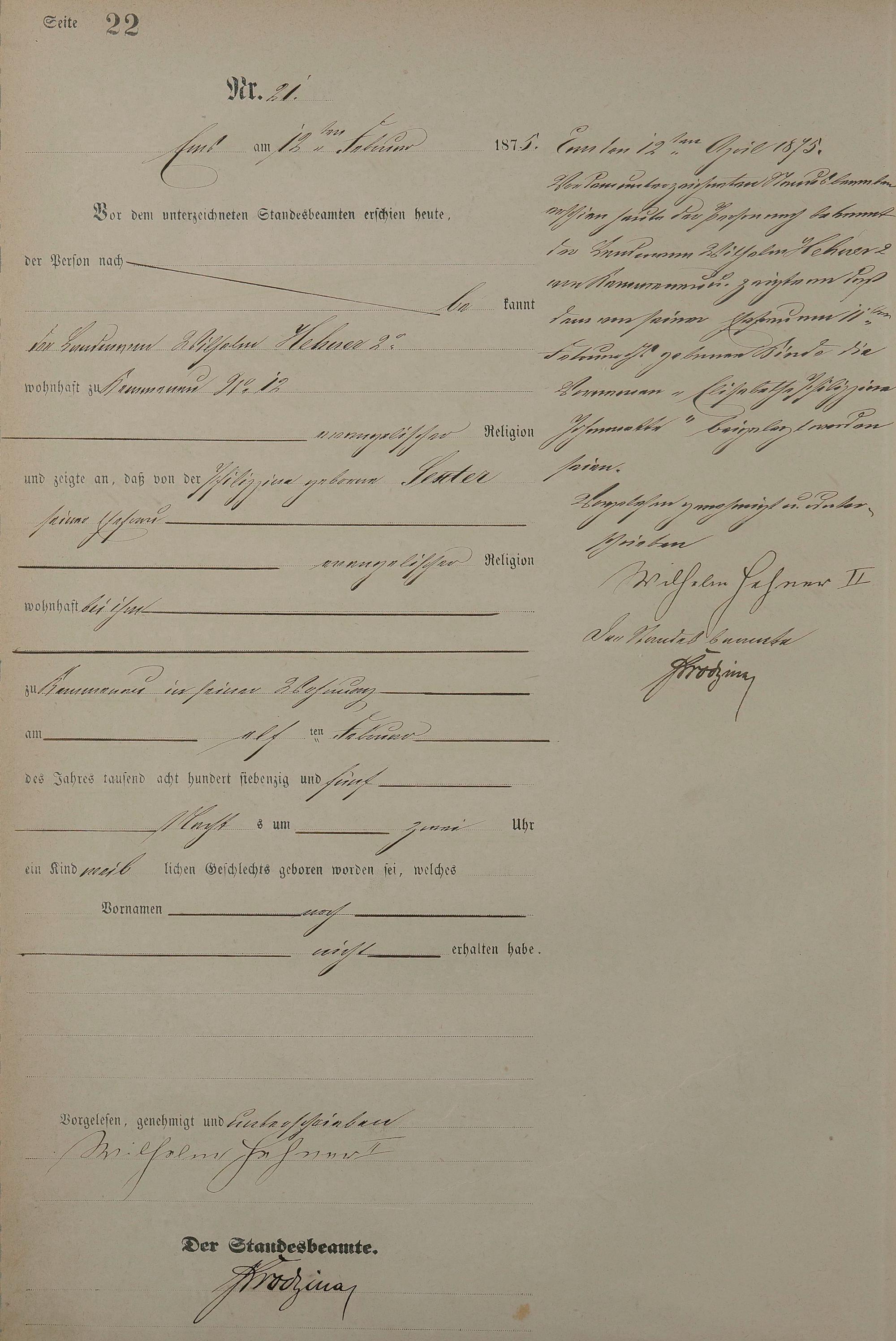 Geburtsregister 1875