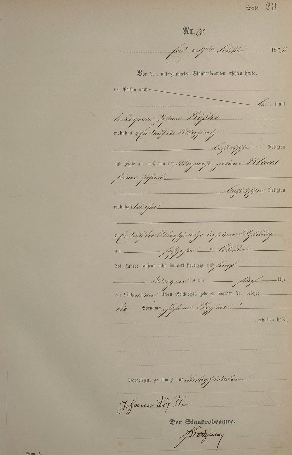 Geburtsregister 1875