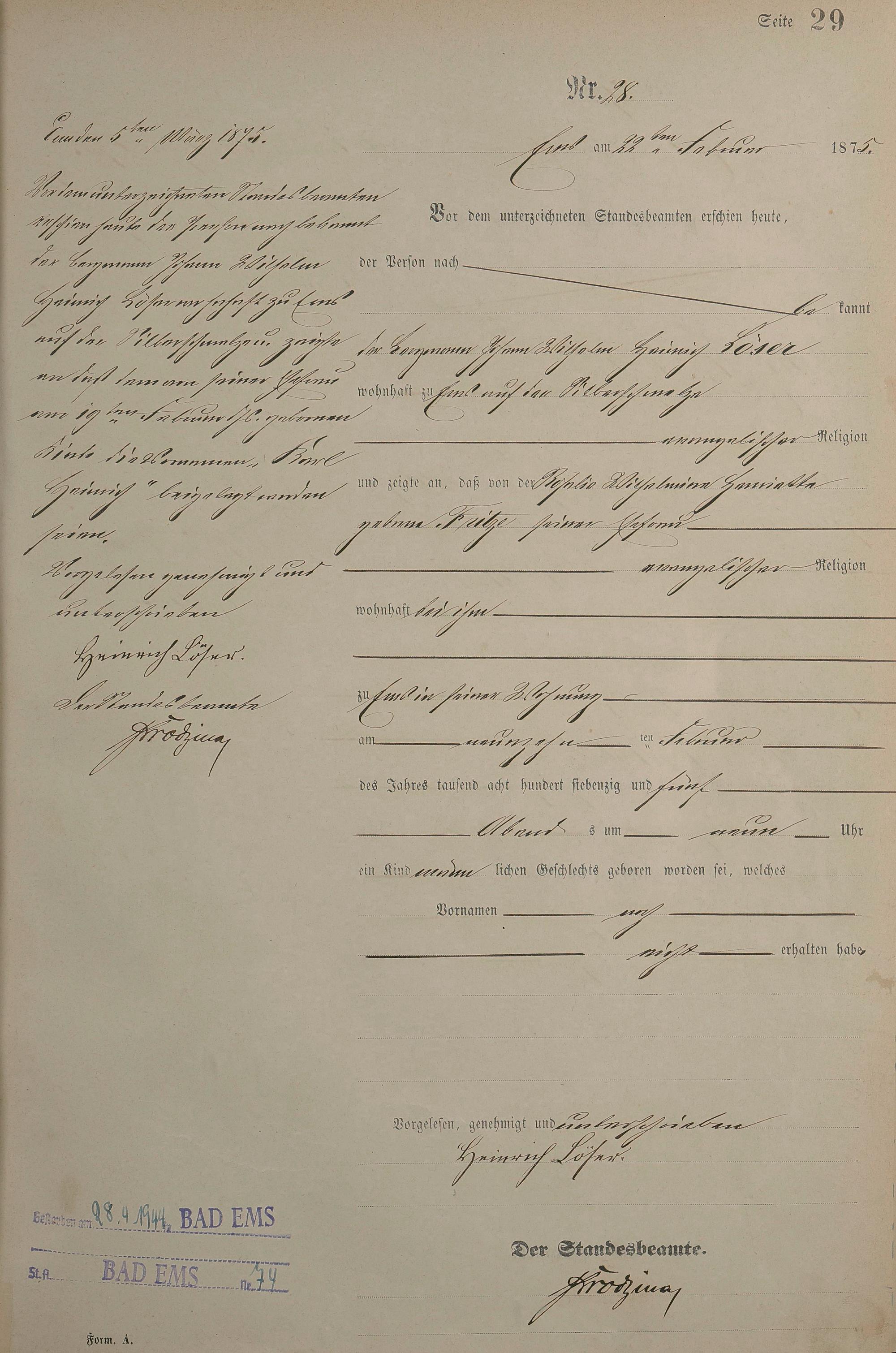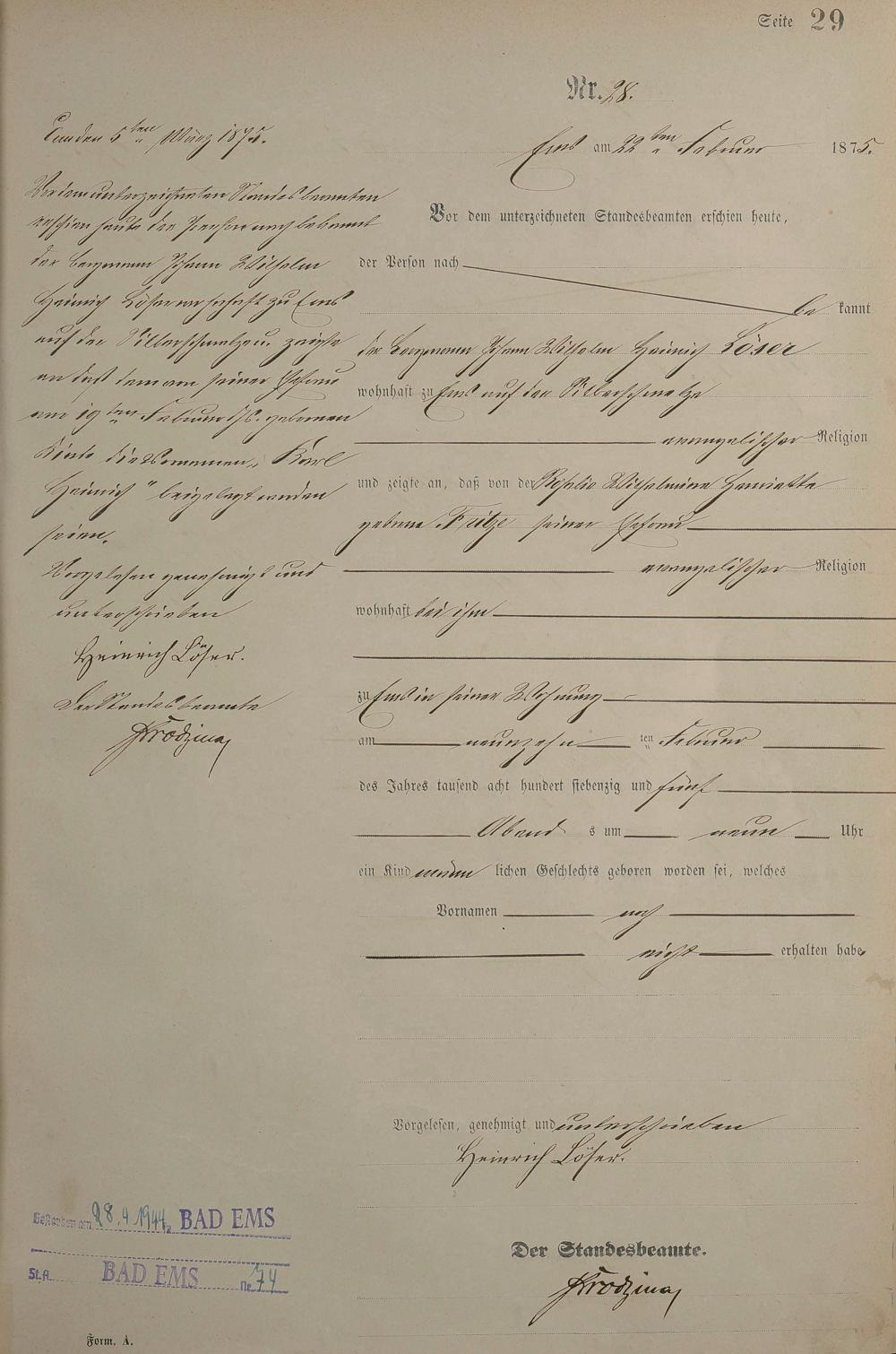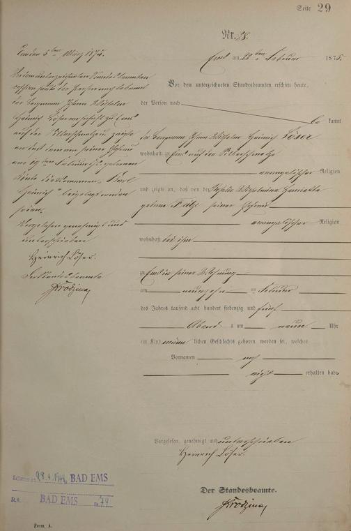 Geburtsregister 1875