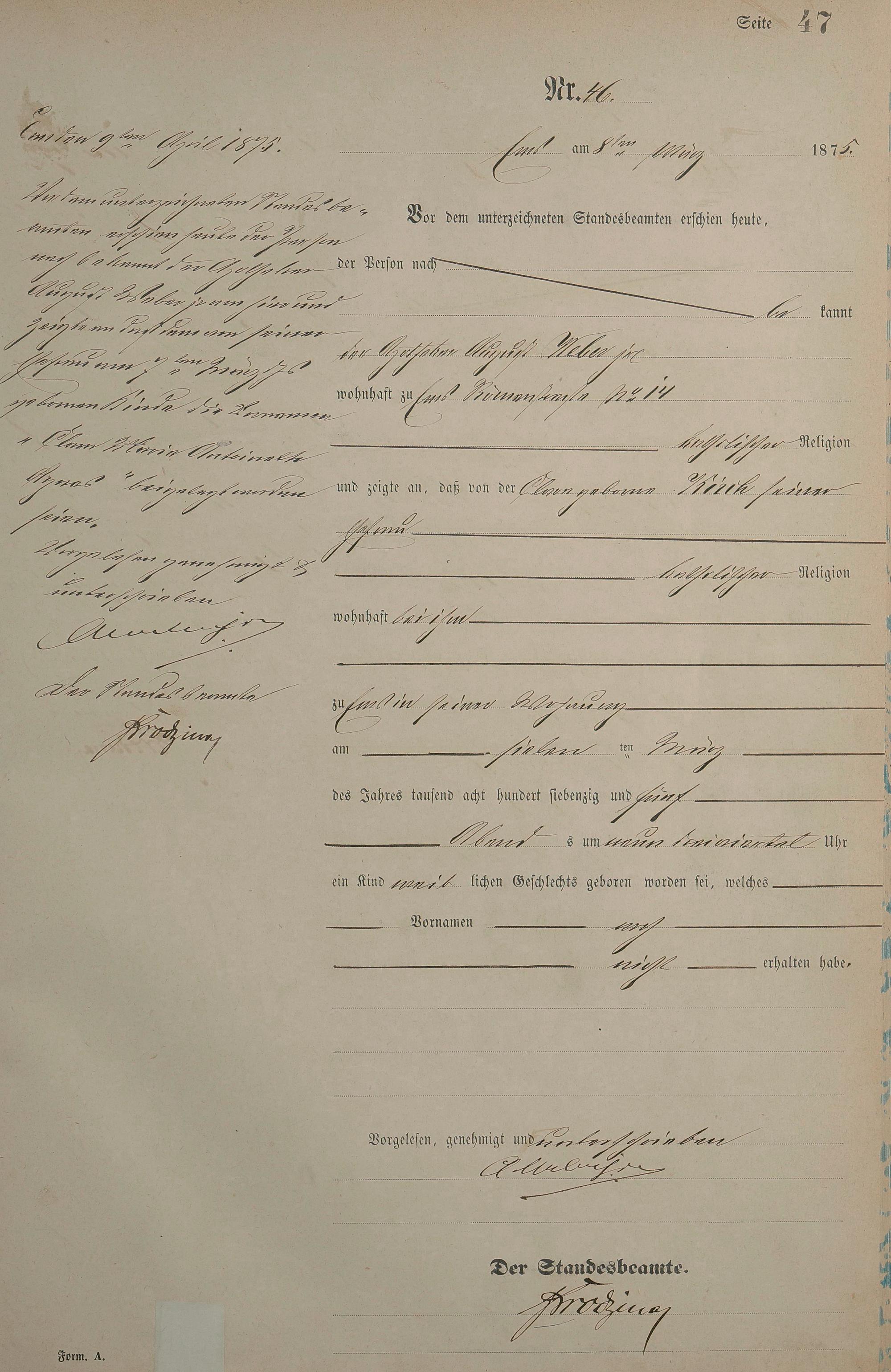 Geburtsregister 1875