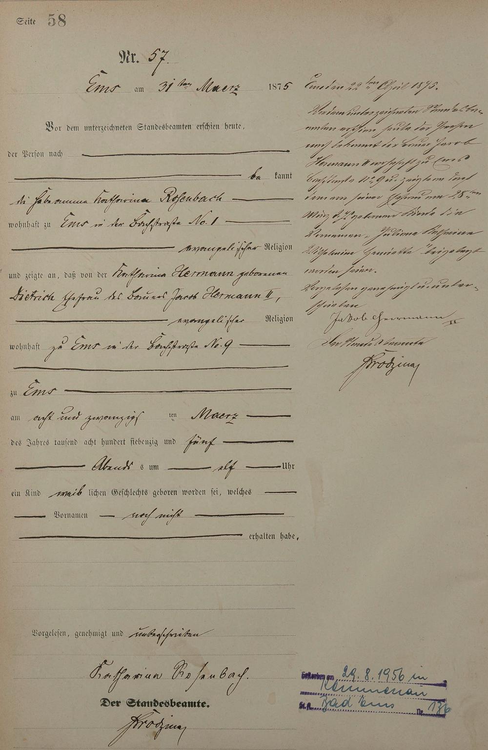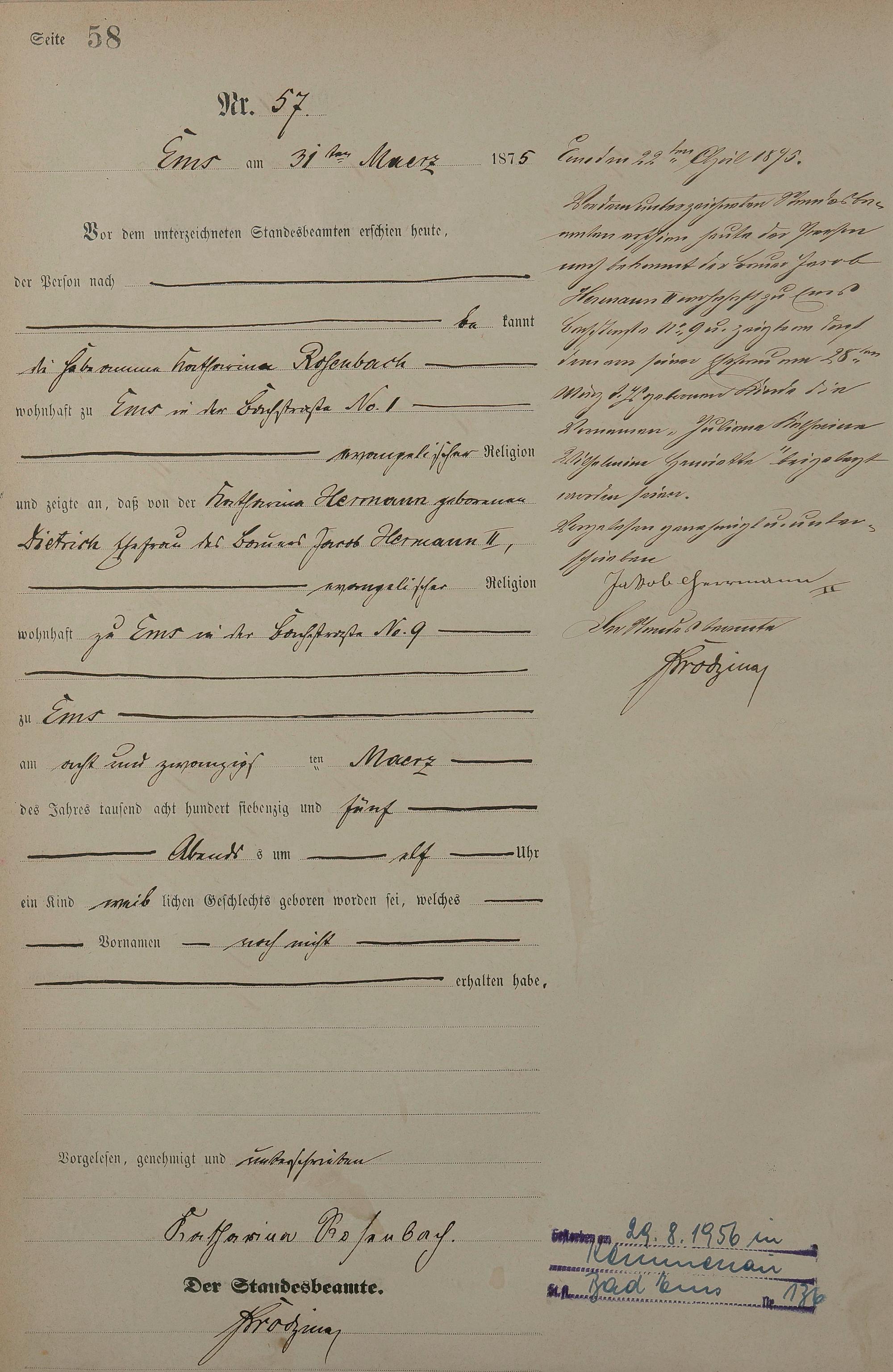 Geburtsregister 1875