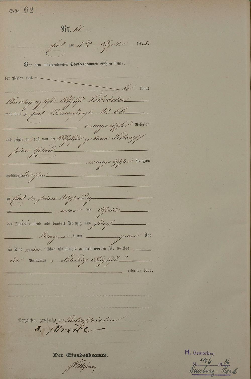 Geburtsregister 1875
