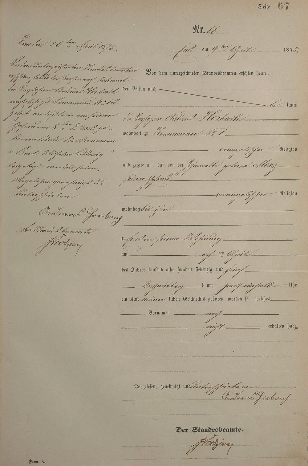 Geburtsregister 1875