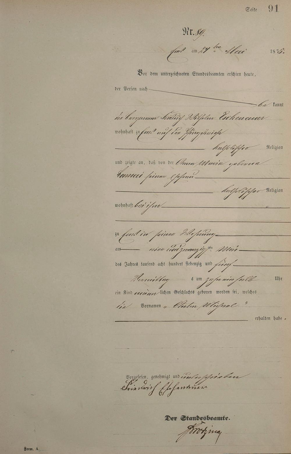 Geburtsregister 1875