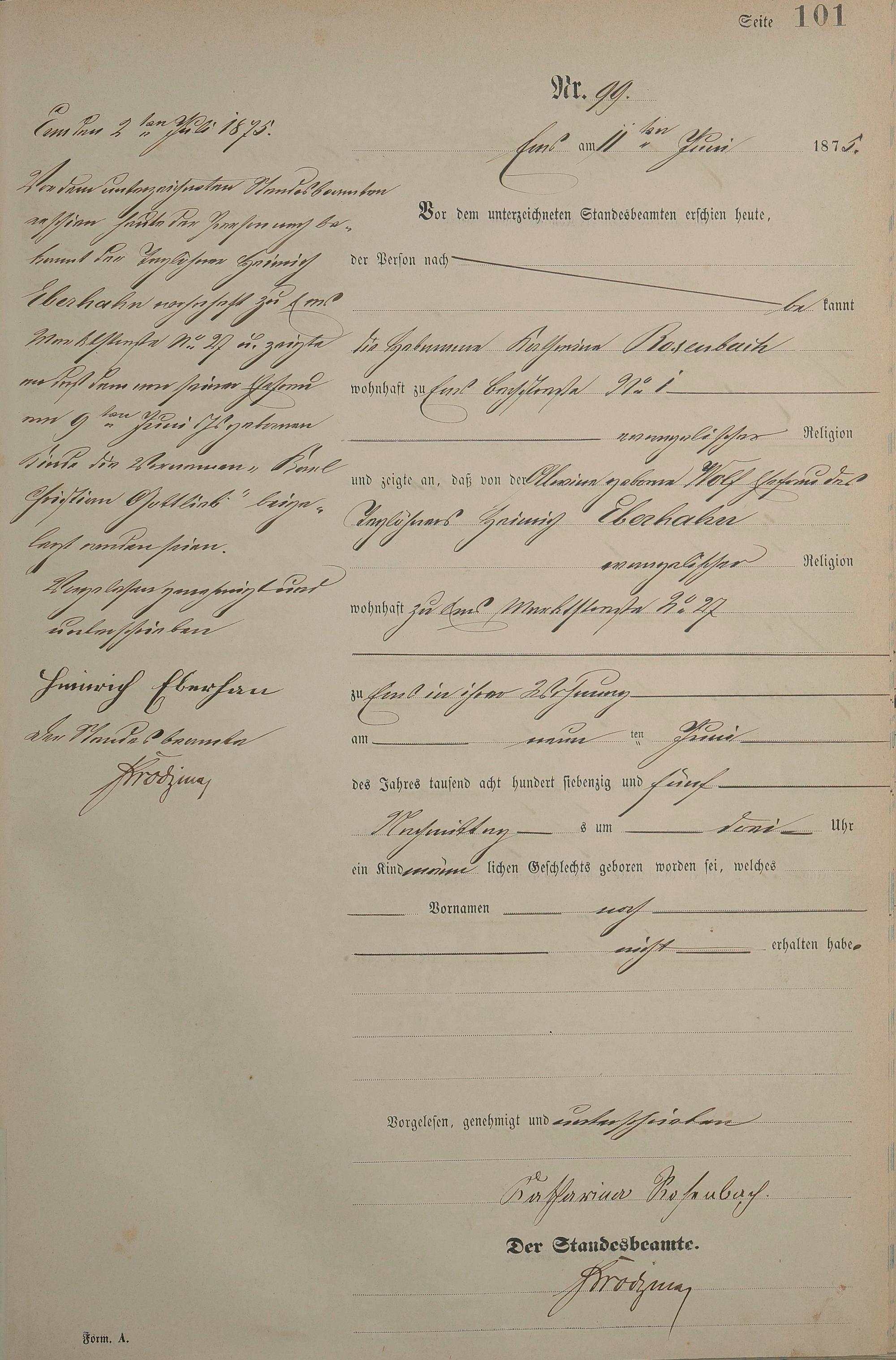 Geburtsregister 1875