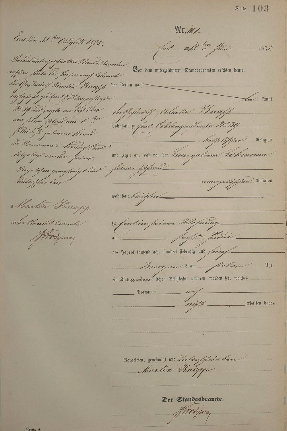 Geburtsregister 1875