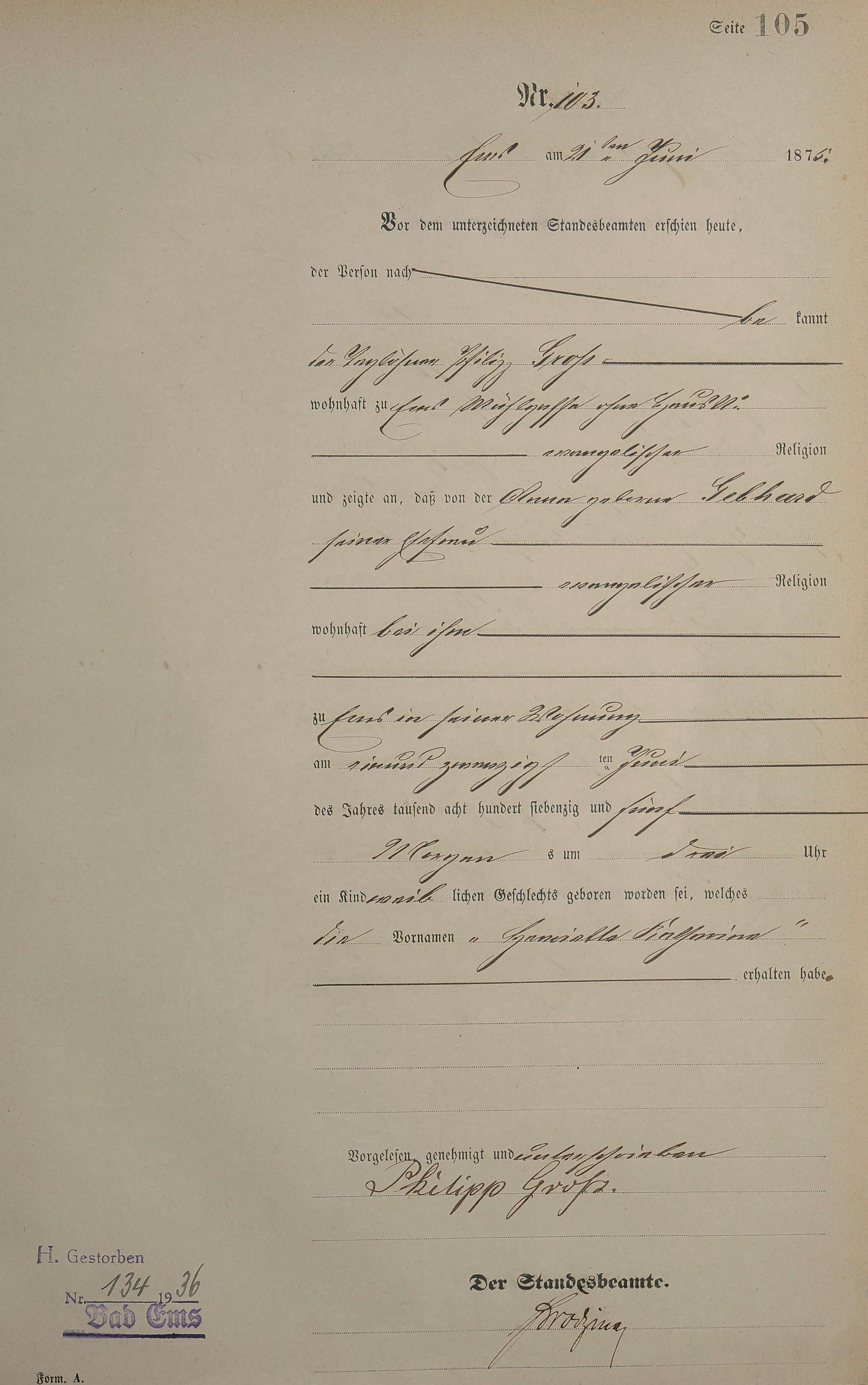 Geburtsregister 1875