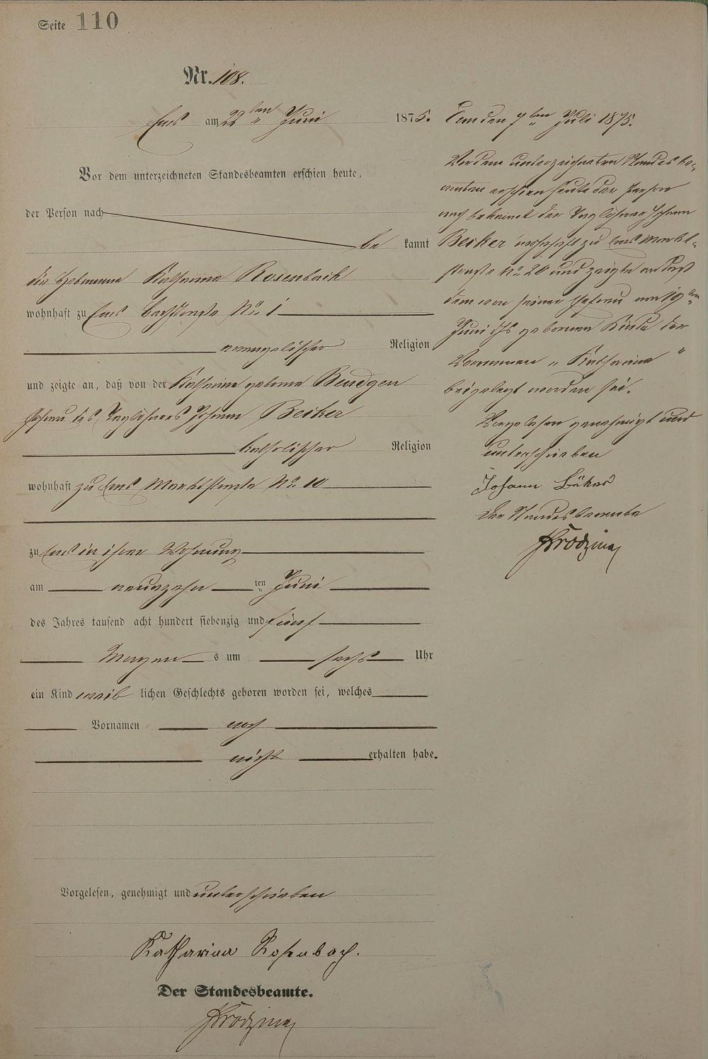 Geburtsregister 1875