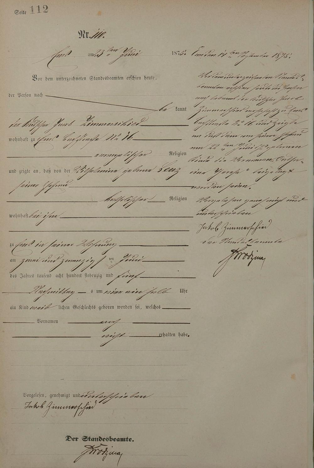 Geburtsregister 1875