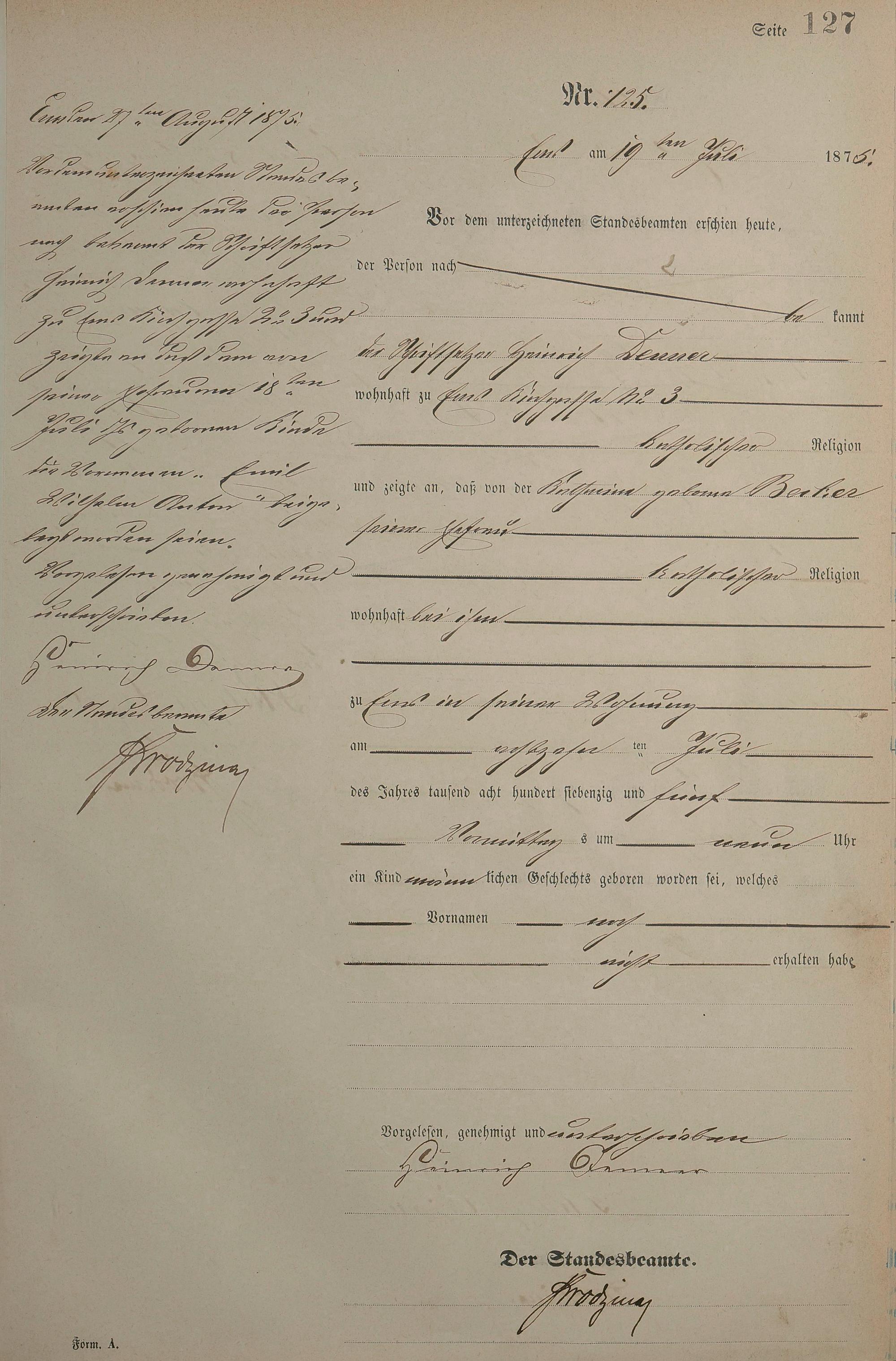 Geburtsregister 1875