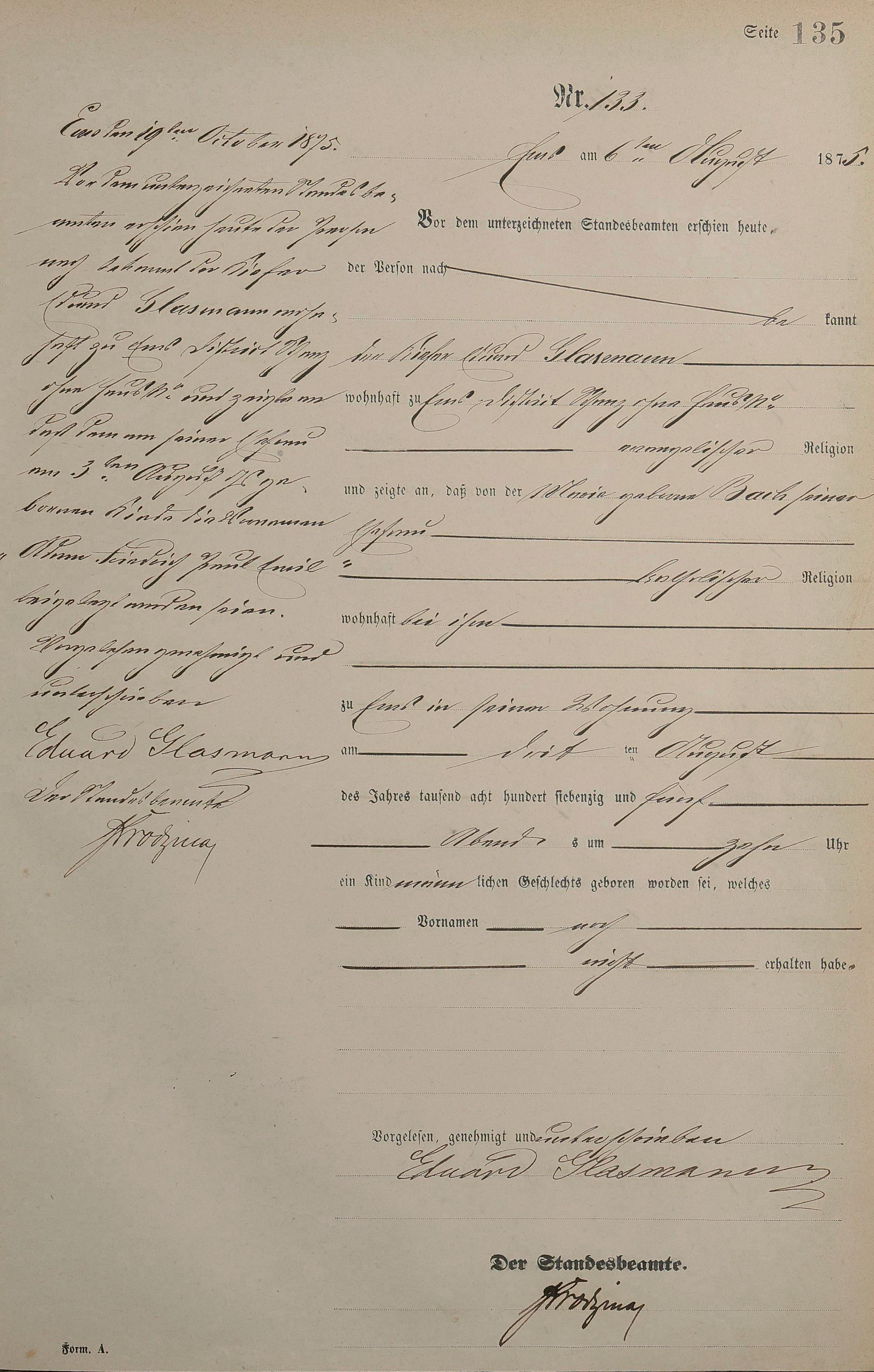 Geburtsregister 1875