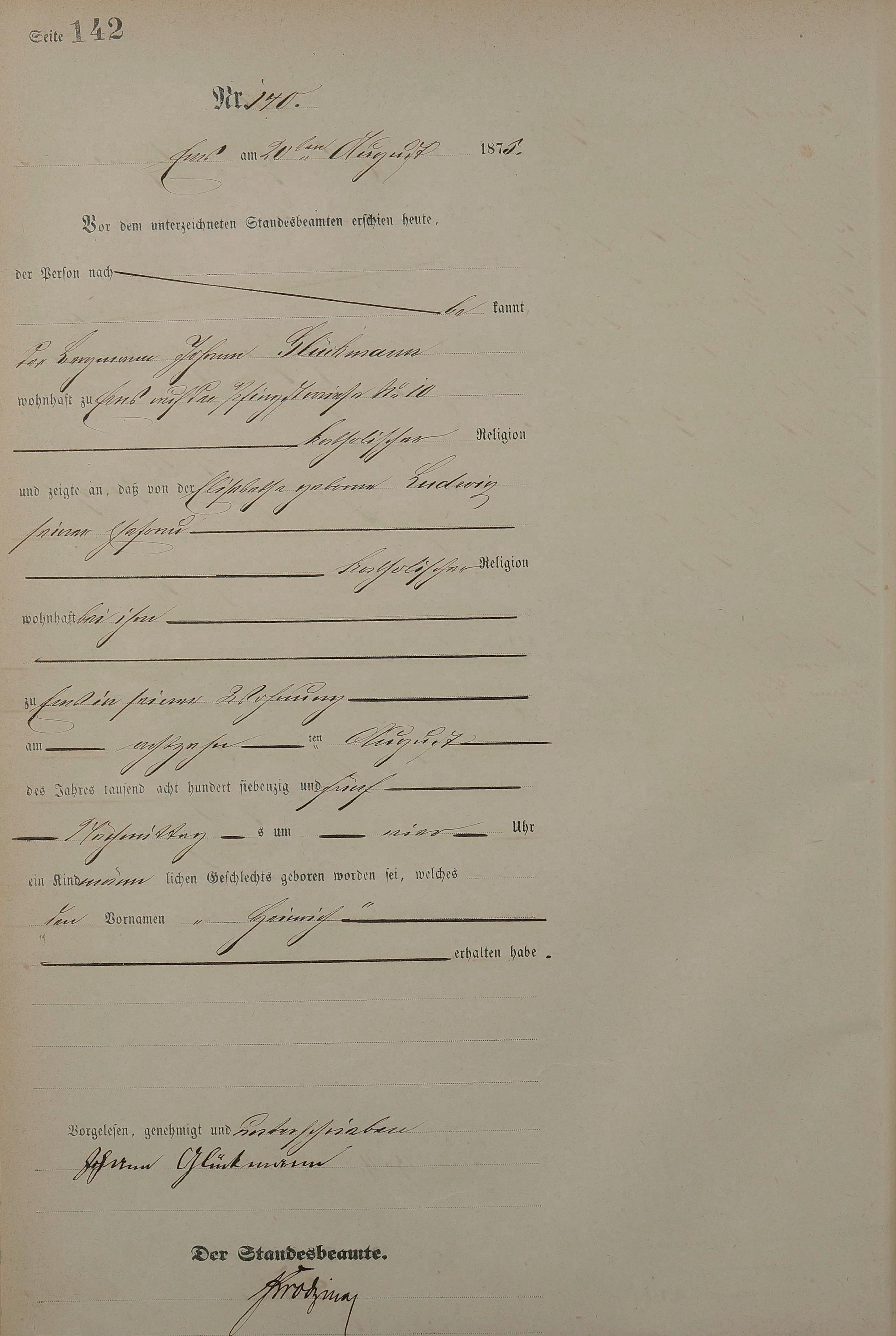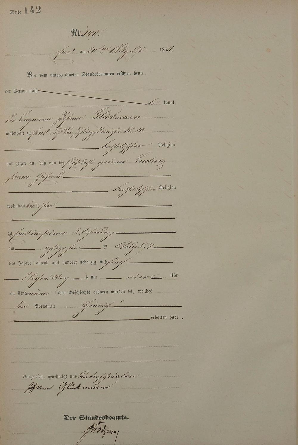 Geburtsregister 1875