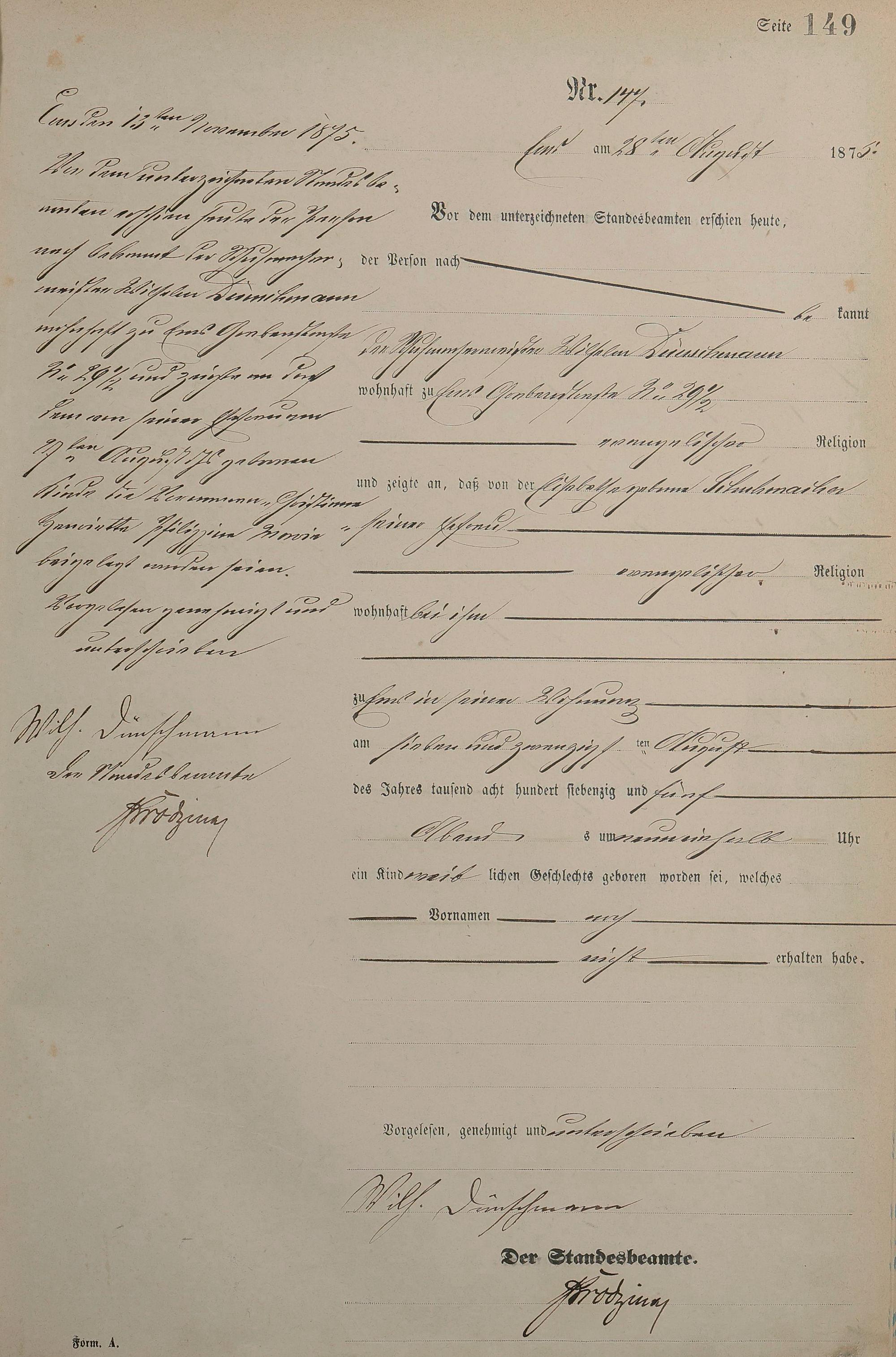 Geburtsregister 1875