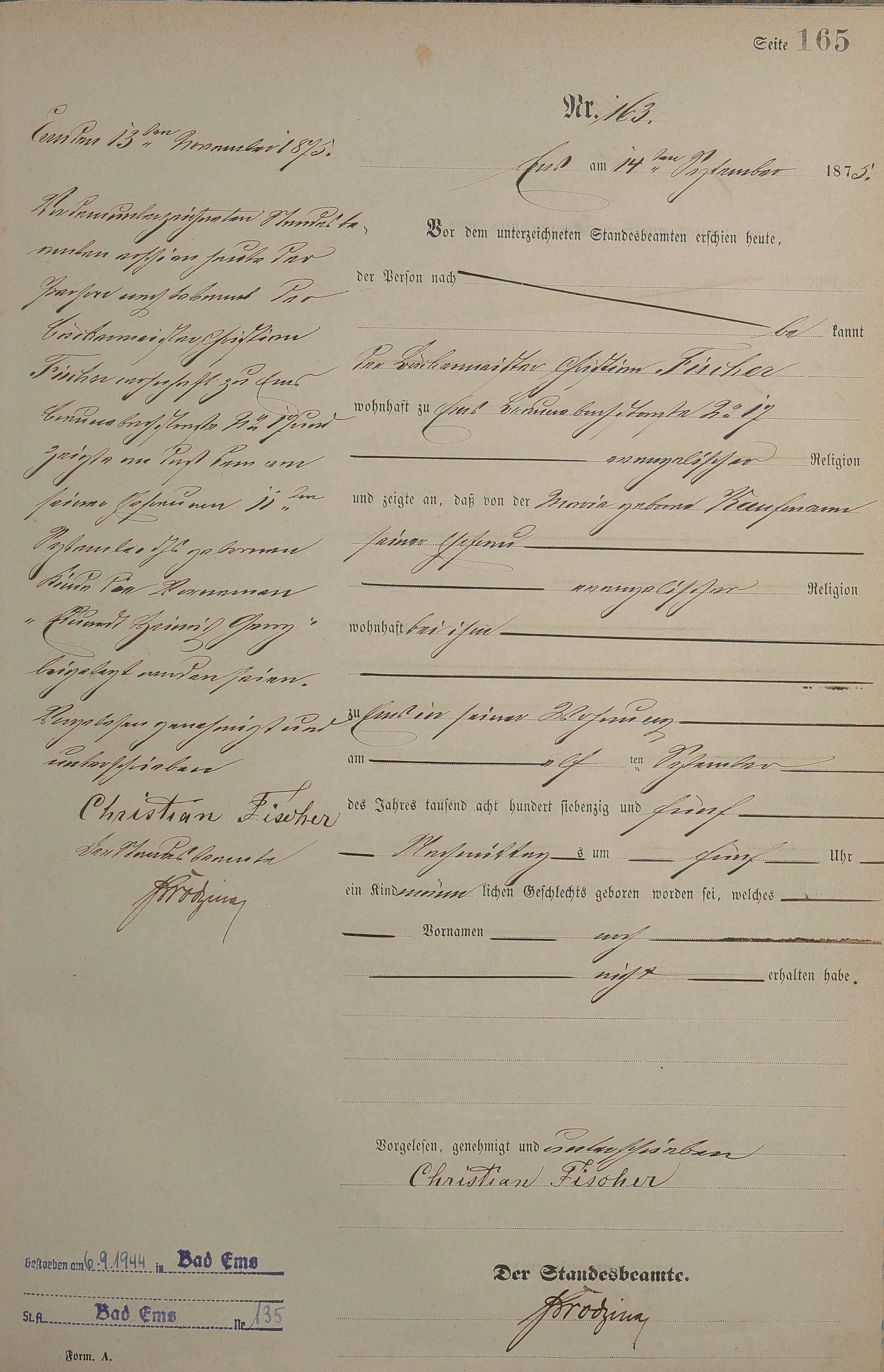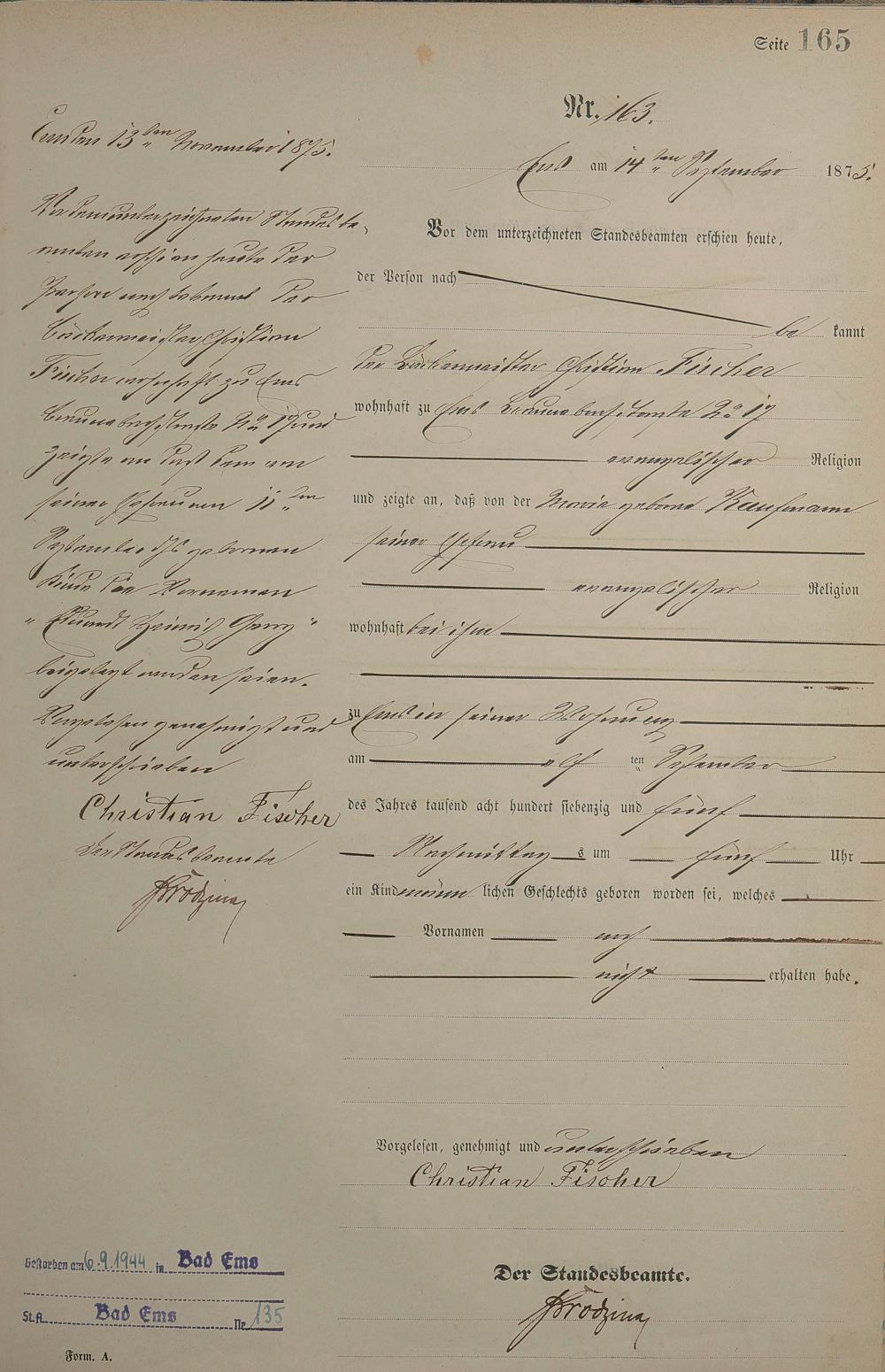 Geburtsregister 1875