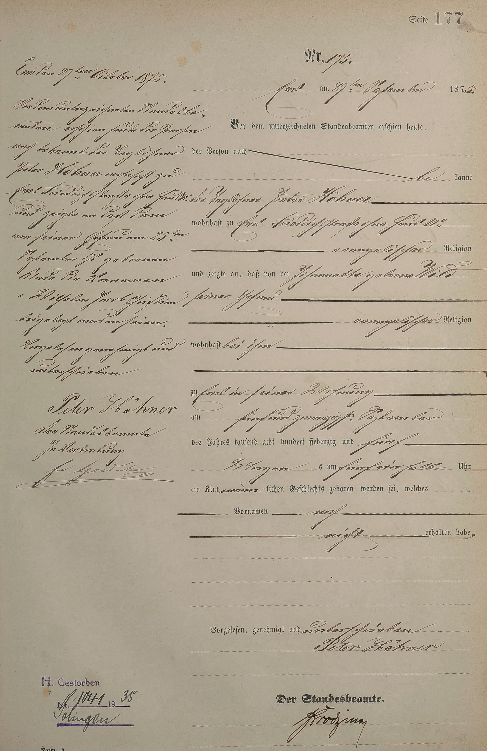 Geburtsregister 1875