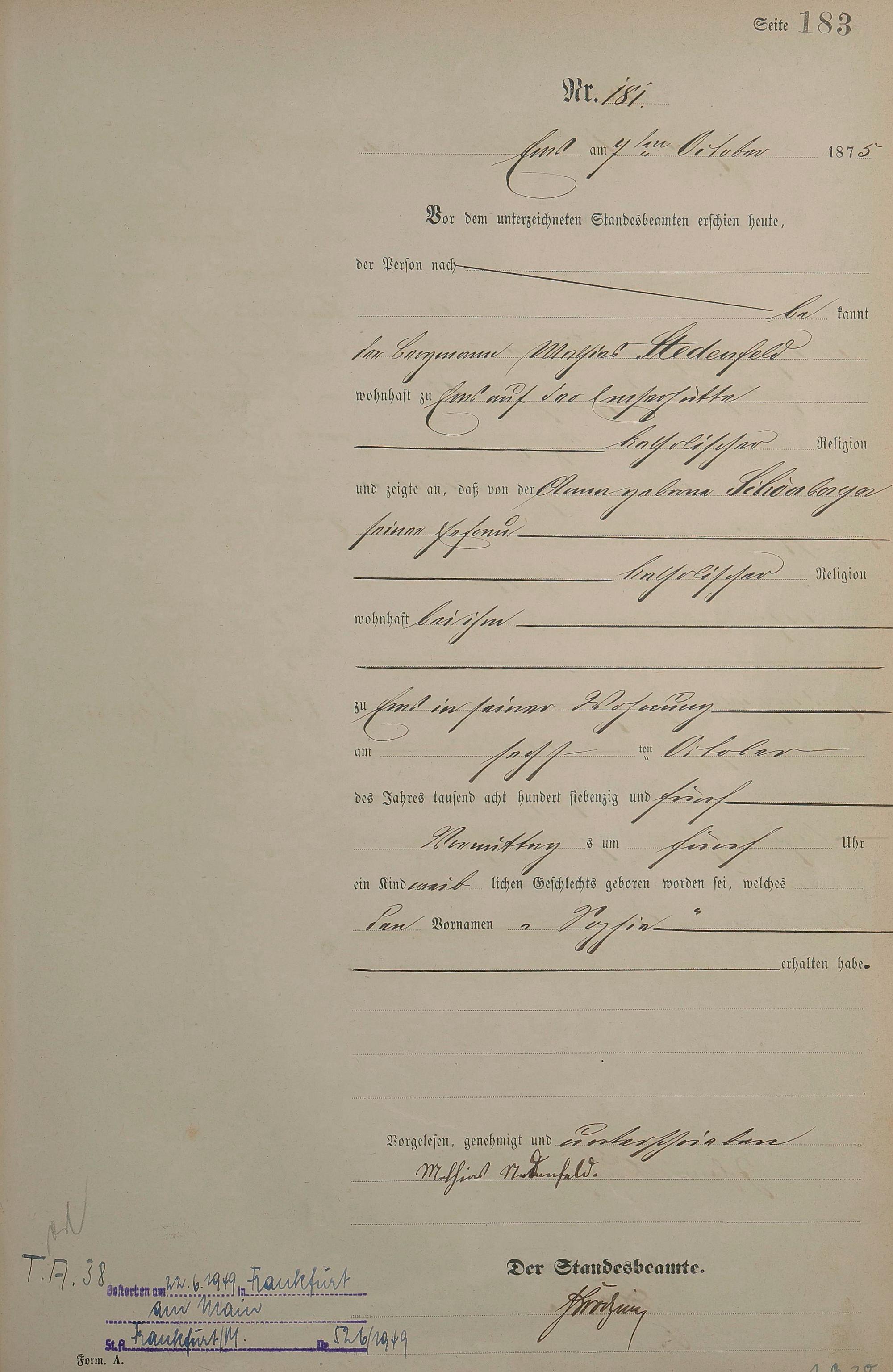 Geburtsregister 1875